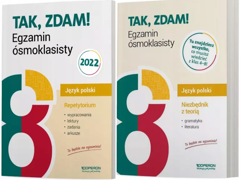 Необходимые знания, необходимые во время экзамена восьмого класса в одном месте. Публикация делает большой акцент на чтении и обучении, как писать эссе, поскольку самые высокие элементы, начисленные на экзамене. Он охватывает культурные и литературные и языковые проблемы. Контент, содержащийся в публикации, позволит вам организовать и повторять сообщения для эффективной подготовки к экзамену. Комплексная поддержка в подготовке к экзамену восьмого класса. Что вы можете найти в публикации: