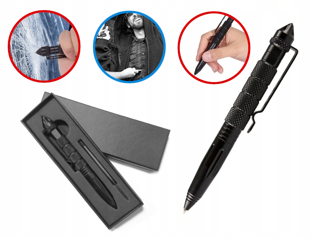 Головка ручки (колпачок) выполняет функцию стеклобоя. Профилированный конус ручки позволяет легко и безопасно работать с такими материалами, как стекло, листовой металл, дерево или пластик. Тактическая ручка будет эффективно работать прежде всего как так называемая куботан против агрессивных нападающих. Благодаря своей незаметной форме тактическая ручка не бросается в глаза, а гибкий зажим облегчает ее переноску. Ребристый и нескользящий корпус ручки гарантирует надежный захват, а соответствующая текстура ручки позволяет эффективно и безопасно удерживать ее при ударах.