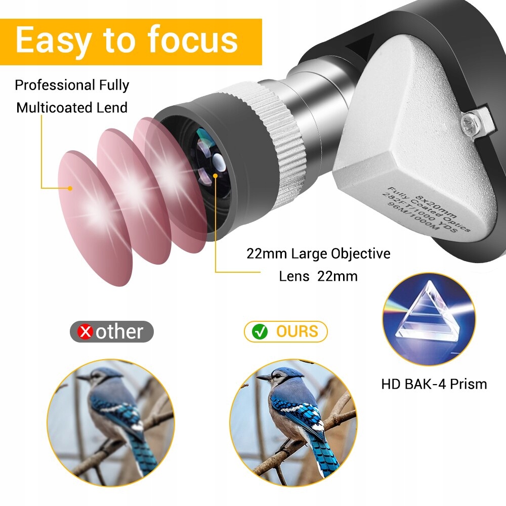 <ул>8x20 Тактический мини-монокулярный телескоп HD ночного видения Водонепроницаемая сумка Военный телескоп FMC Монокулярный уличный прицел для путешествий и кемпинга