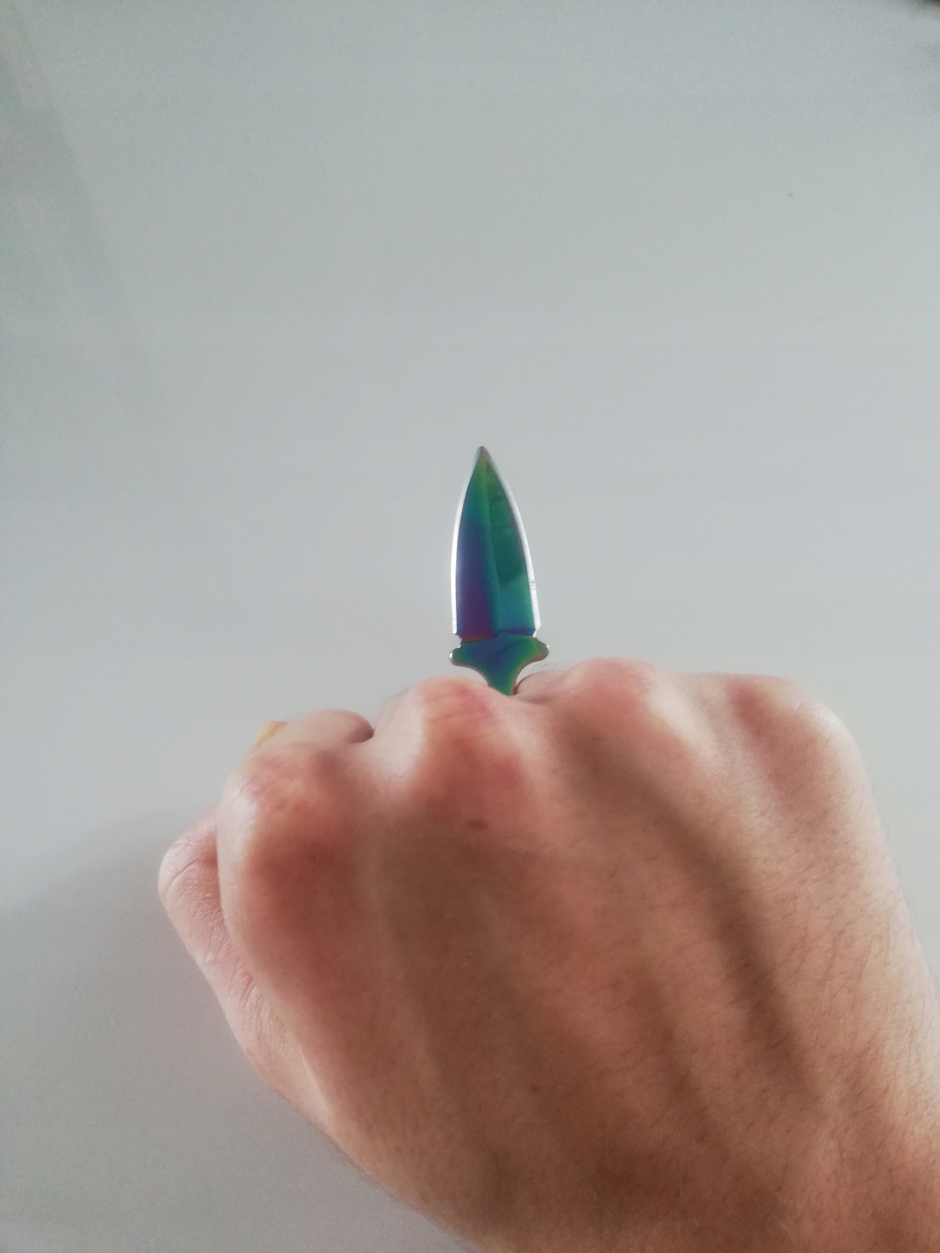 Очень легкий и прочный нож кинжала, предназначенный для самооплаты. Легко скрыть. Сделано из одного куска нержавеющей стали.