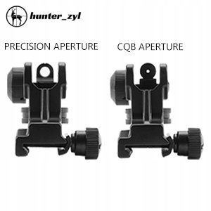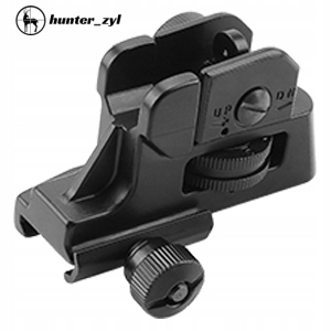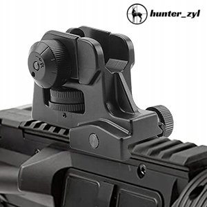 - Запасной прицел с двумя отверстиями для переключения между режимами CQB и Precision, идеально подходит для ближних и дальних дистанций. Со шкалой на целик, вы можете повернуть ручку, чтобы получить правильное положение прицеливания, просто регулируя горизонтальное положение.