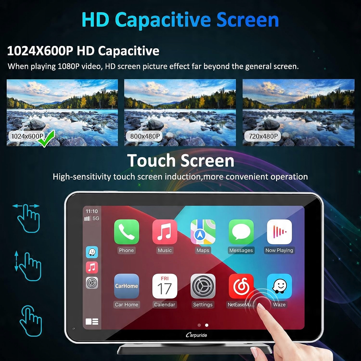 7-дюймовое стерео автомобиль с помощью сенсорного экрана и HD IPS 1024x600 HD-экран, поддерживающий воспроизведение видео 1080p. Carpuride Stereo Car обеспечивает персонализированную адаптацию стартового логотипа и экрана бесплатно. Просто отправьте нам свой любимый стартовый логотип и стартовый экран, например, логотип и фотография вашего любимого автомобиля, это полностью персонализированная адаптация
