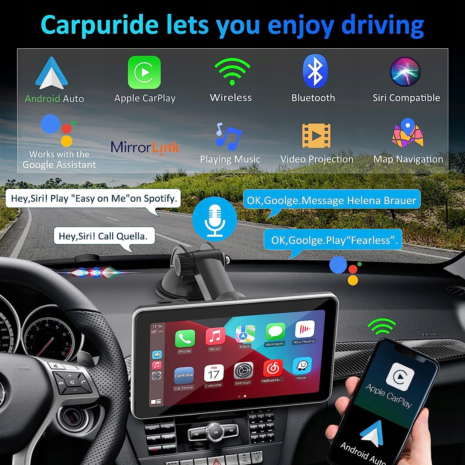 Это беспроводное автомобильное радио совместимо с Apple CarPlay, Android Auto и совместимо с беспроводной сетью с функцией зеркальной ссылки, которая позволяет голосовать, например, Siri/Google, чтобы помочь вам получить доступ к функции телефона, включая соединения, навигацию после карт, музыку, сообщения и т. Д., В то время как вы можете сосредоточиться на Дорога