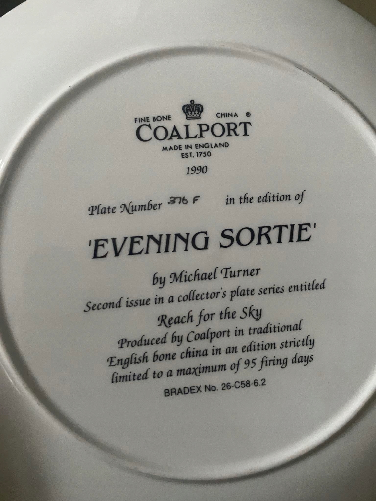 Talerz kolekcjonerski samolot Coalport Evening Sortie