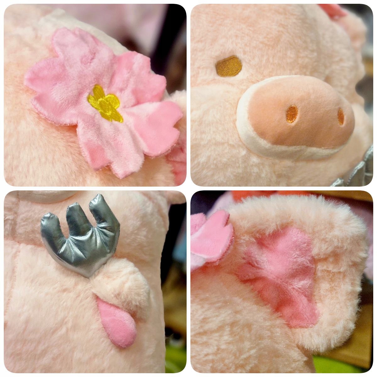 Талисман плюшевая большая толстая свинья с вилкой 40 см