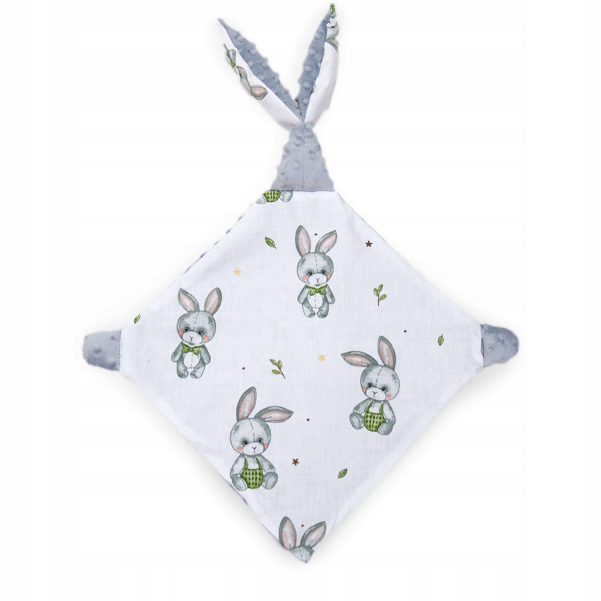 Мягкая игрушка изготовлена из 100% хлопка с одной стороны и минкевого плюша с другой. Голова кролика набита антиаллергенной силиконовой тканью. Отличная разноцветная игрушка для обнимашек, игр и развития нашего малыша. Вшитые ушки и лапки стимулируют ваше воображение к игре.