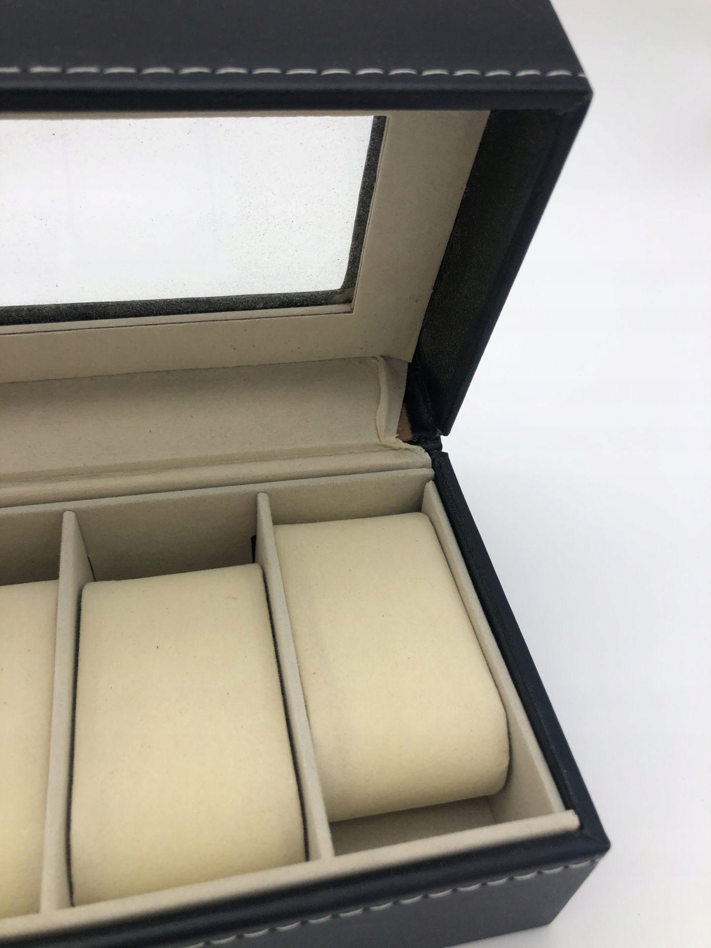 Премиум материалы: подкладка и бархатные подушки высочайшего качества, черная кожаная поверхность PU Premium, 6 сменных подушек. Металлическая застежка, легко открываясь одной рукой, не требует ключа.