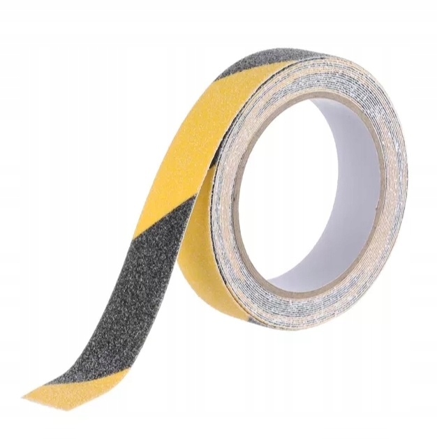 Лента противоскользящая желто-черная 25мм 18м предупреждающая разметка ЛЕСТНИЦЫ