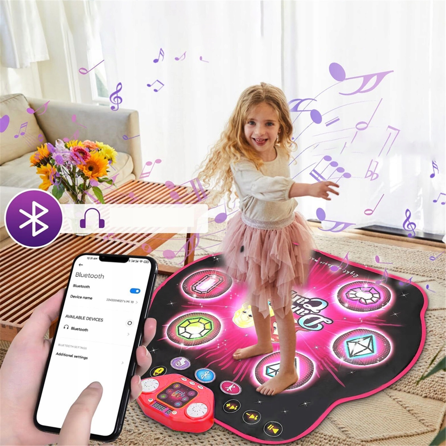 Анти -слабый танцевальный коврик с 27 уровнями Bluetooth для девочек 82*87