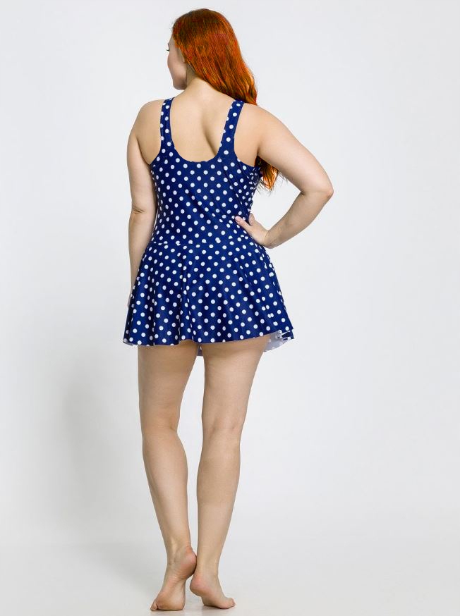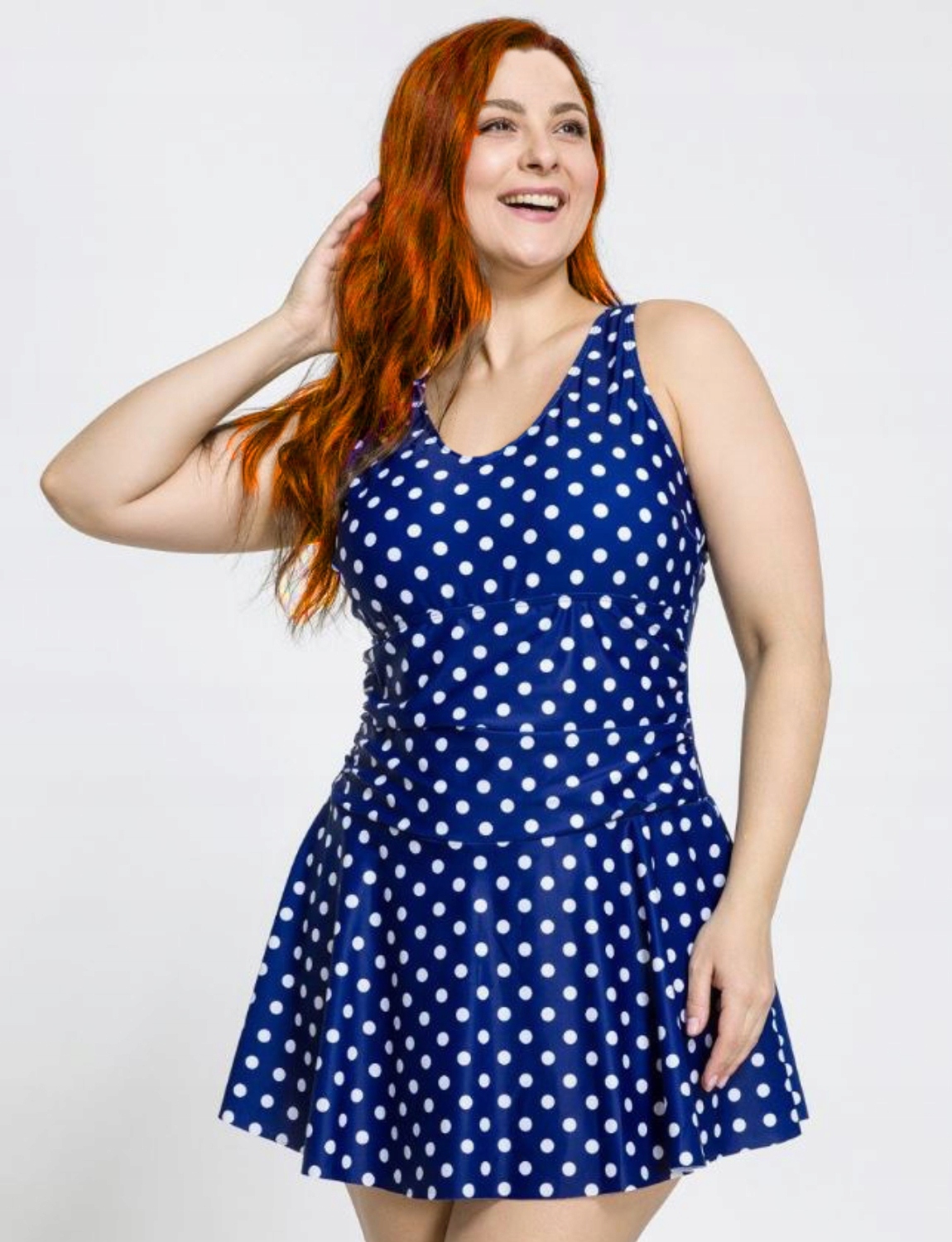 ✨ Наш купальник-двойка состоит из моделирующего струящегося топа и шорт. Вечный узор из белых горошек на темно-синем фоне и футболка, закрывающая живот заставили женщин полюбить этот костюм!
