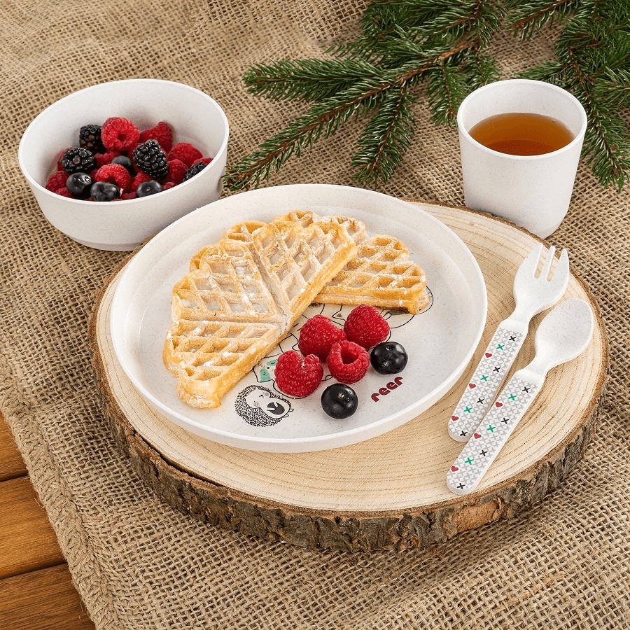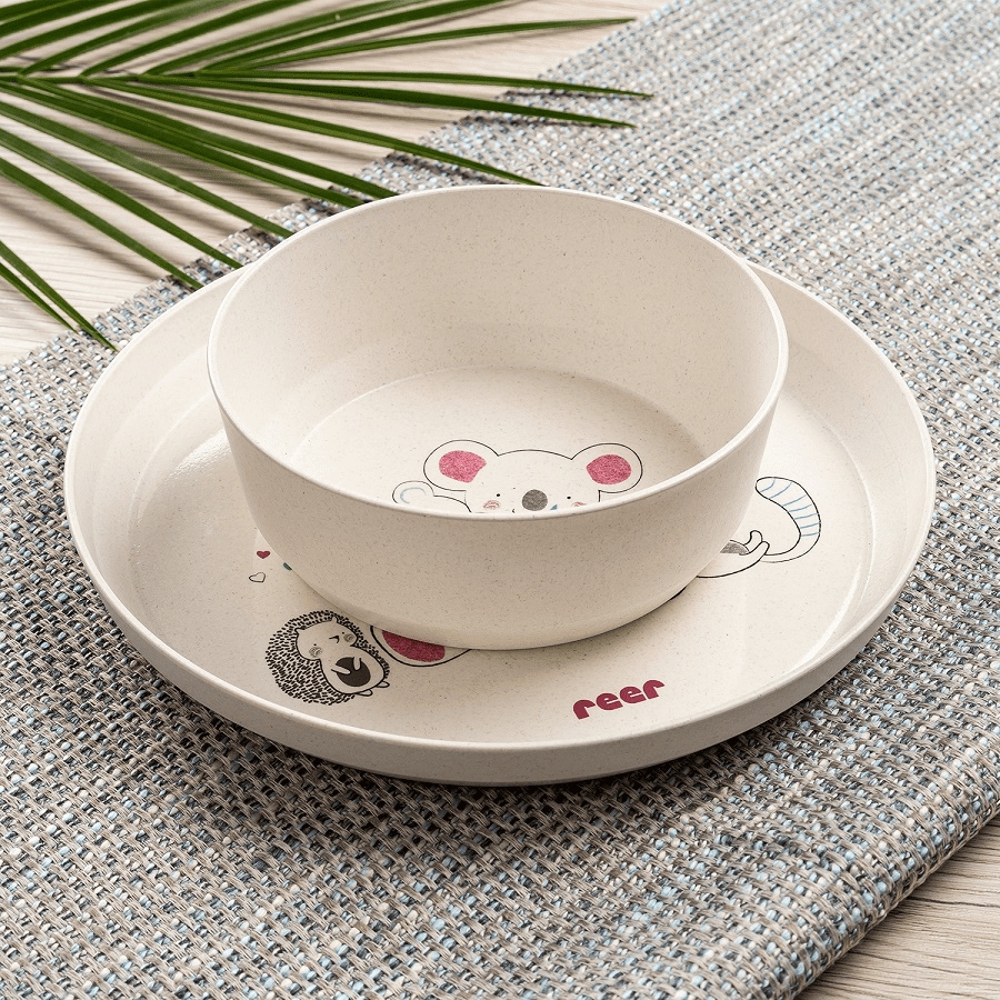 Набор - тарелка, чашка, миска, вилка и ложка - изготовлены из прочных и экологических материалов - серия для выращивания от REER