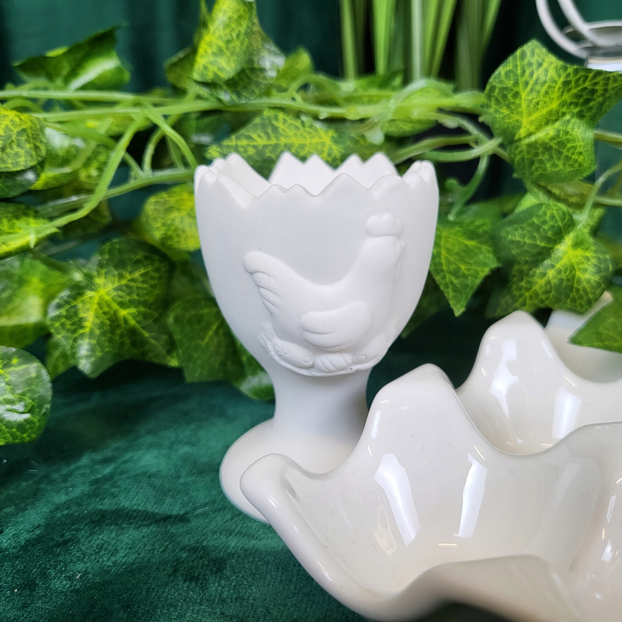 Белая керамическая тарелка для подачи яиц. Я могу легко адаптироваться к любой посуде. Идеально подходит для кухни, не только во время Пасхи.