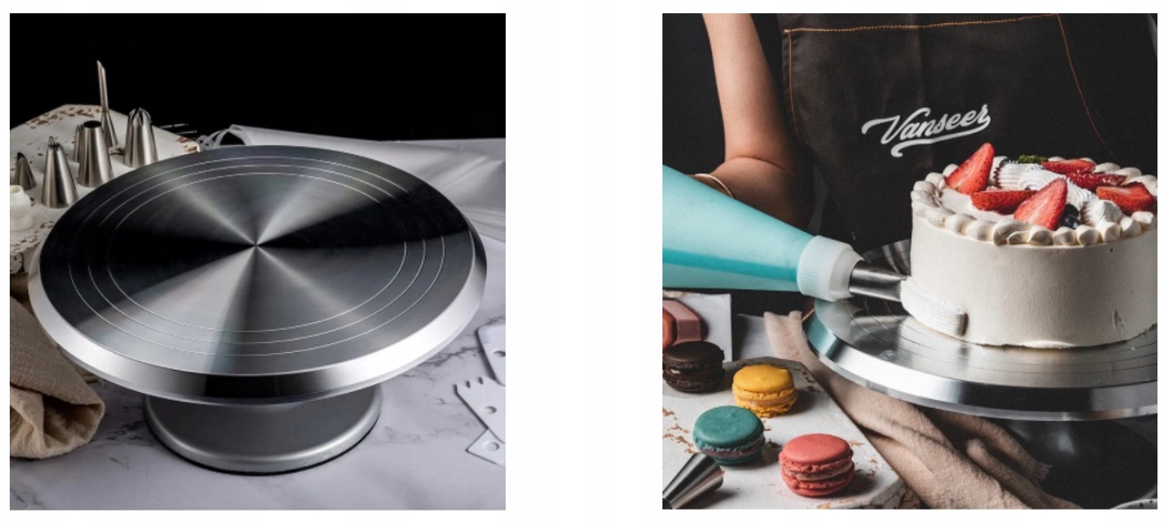 Но не только это! Подставку для торта также можно использовать для украшения тортов. Вращение на 360 градусов обеспечивает идеальное распределение крема и предотвращает загрязнение торта.