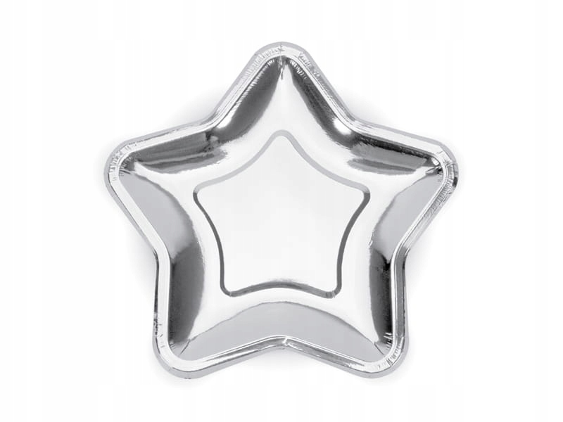 БУМАЖНЫЕ ТАРЕЛКИ, СЕРЕБРЯНЫЕ ЗВЕЗДЫ, ЗВЕЗДОЧНАЯ ФОРМА ДЛЯ ВЕЧЕРИНКИ, 23 СМ, 6 ШТ.