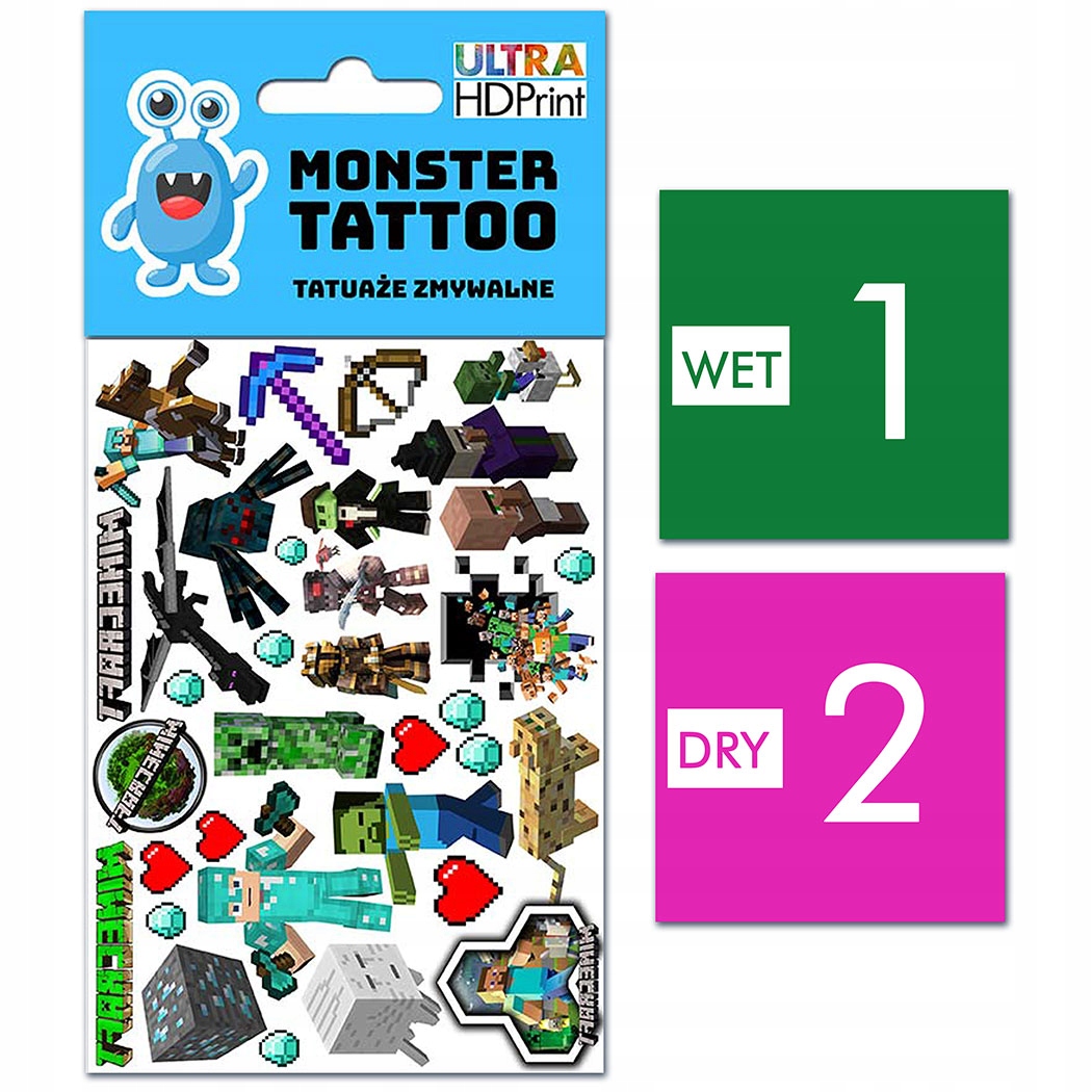 TATUAŻE ZMYWALNE DLA DZIECI MINECRAFT WZORY ORYGINALNE