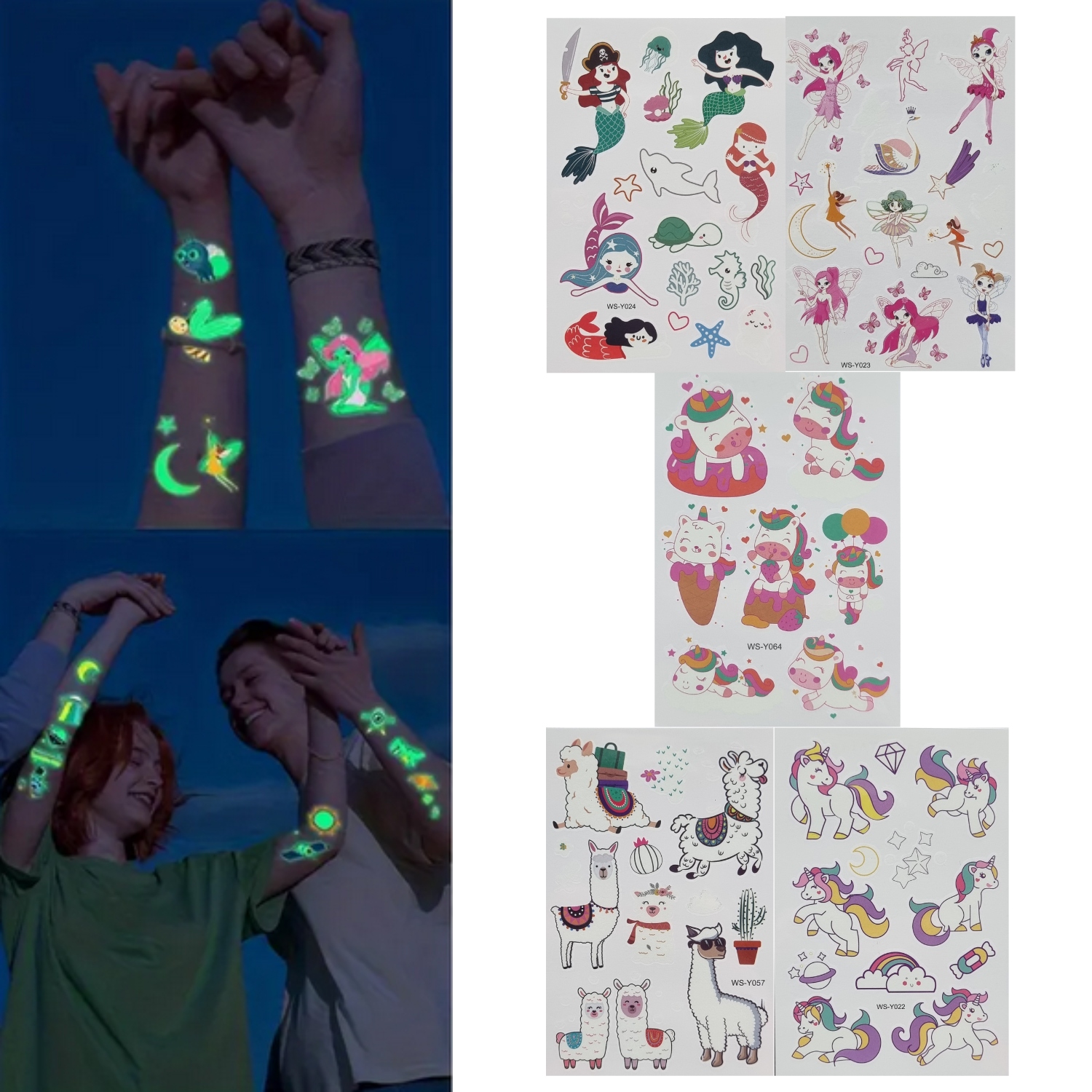 Татуировки для детей светятся в темноте моющиеся феи единороги лама 5x