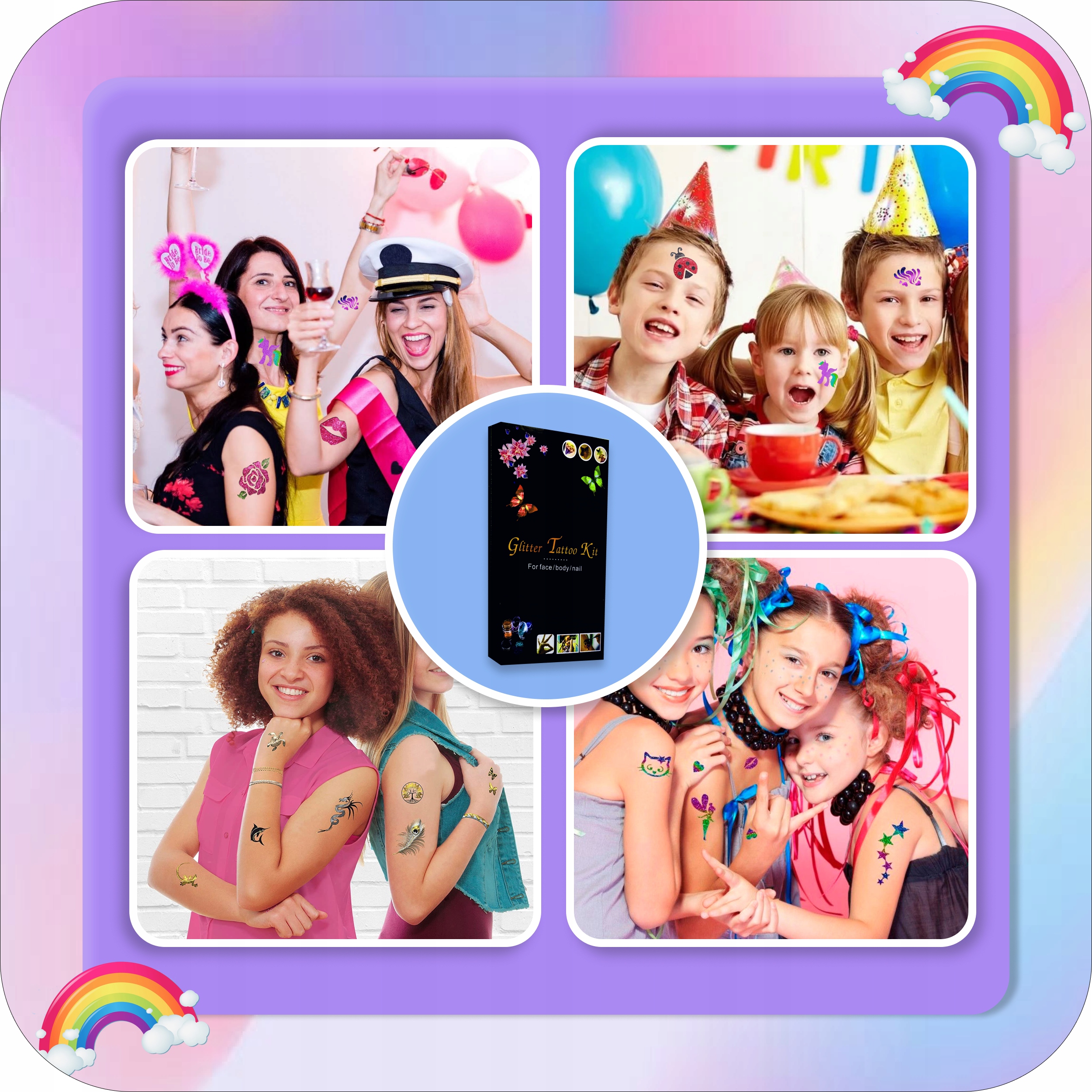 Позвольте им погрузиться в мир фантазии и творчества с нашими безопасными и красочными блестящими татуировками.