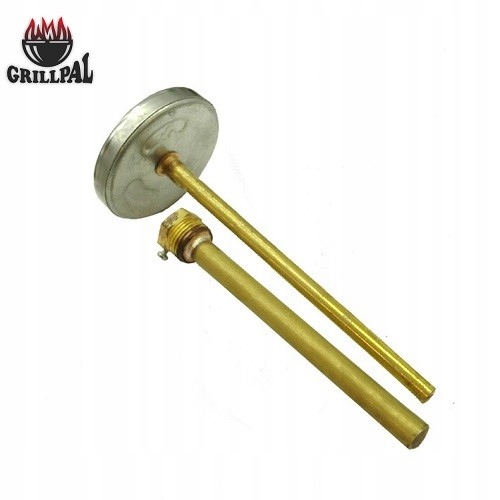 Термометр является важным элементом любой дымовой кости. Изготовлен из кислотной стали и меди. Медный датчик идеально измеряет температуру, потому что медь является лучшим руководством. Термометр имеет прозрачную измерительную шкалу, и благодаря рукаву на валу вы можете отрегулировать его к отверстию с помощью заданного диаметра.