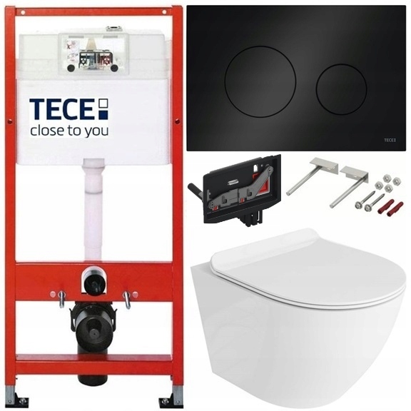 НАБОР ДЛЯ УНИТАЗА TECE, ЧАША БЕЗ ОПРАВЫ, ЧЕРНАЯ ГЛЯНЦЕВАЯ КНОПКА