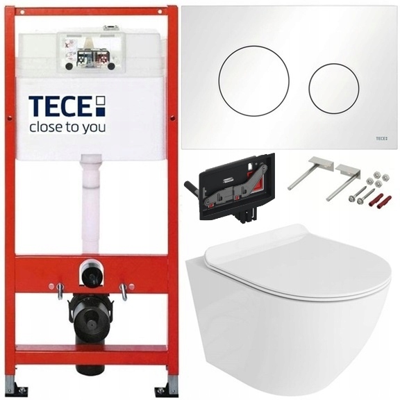 НАБОР ДЛЯ УНИТАЗА TECE С БЕЗОБОРОТНОЙ ЧАШЕЙ, БЕЛАЯ ГЛЯНЦЕВАЯ КНОПКА