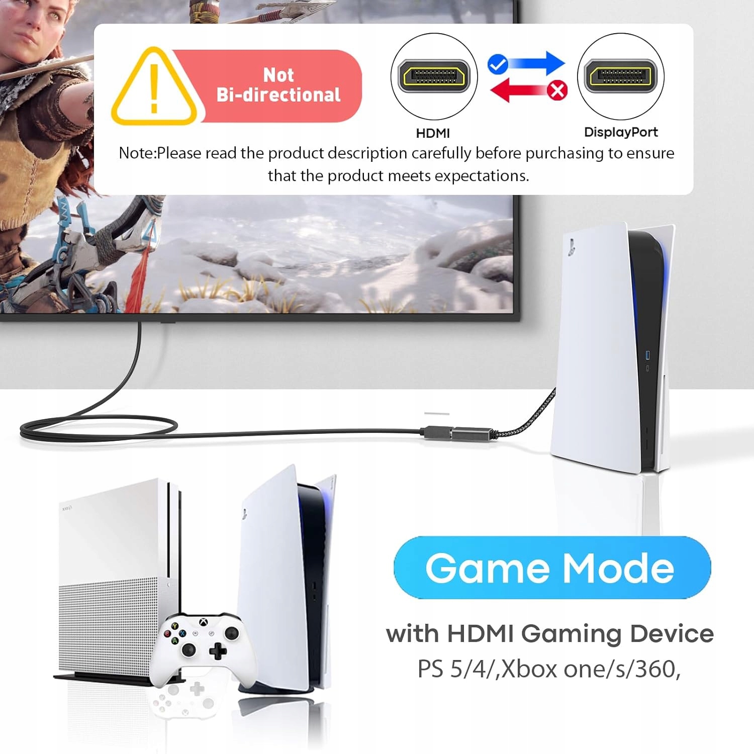 Plug & Play Solution: Active HDMI -кабель для кабеля отображения порта легко отправляет содержимое 4K на высокой скорости от устройств HDMI для мониторов DP, телевизоров HDTV и проекторов без установки DRIVERS или программного обеспечения. Соответствует стандарту HDCP2.2. (Совет: Для всех устройств Apple подключите их к порту источника питания USB, чтобы получить оптимальный дисплей. Не используйте ни с какими KVM/Dock/Hub.) Примечание. Кабель HDMI DisplayPort не может увеличить исходное разрешение игры, для серии Xbox он будет отображаться в разрешении 1080p, PS5 поддерживает до 4K при 60 Гц. (Не соответствует NS, не используйте переключатель)