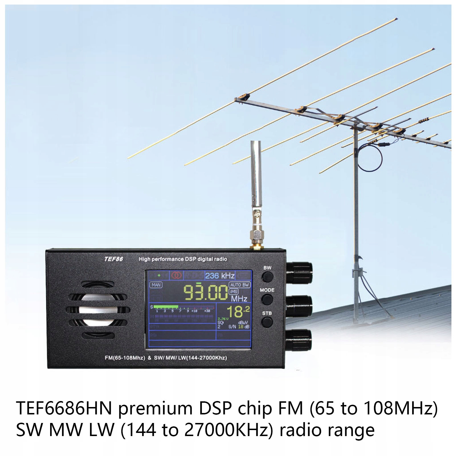 1. ДЕТАЛИ ПРОДУКТА: Высококачественный чип TEF6686HN DSP, диапазон FM-радио (от 65 до 108 МГц) и SW MW LW (от 144 до 27000 кГц).