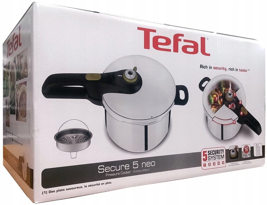 Tefal Secure Neo 5 6 литров благодаря безопасной скороварке Neo 5 Tefal, вы можете приготовить их более быстрее . Оставайтесь с коротким временем приготовления вкус и витамины лучше остановлены. Вы едете здоровее. Эта скороварка имеет емкость 6 литров, поэтому вы можете готовить от 4 до 6 человек одновременно.