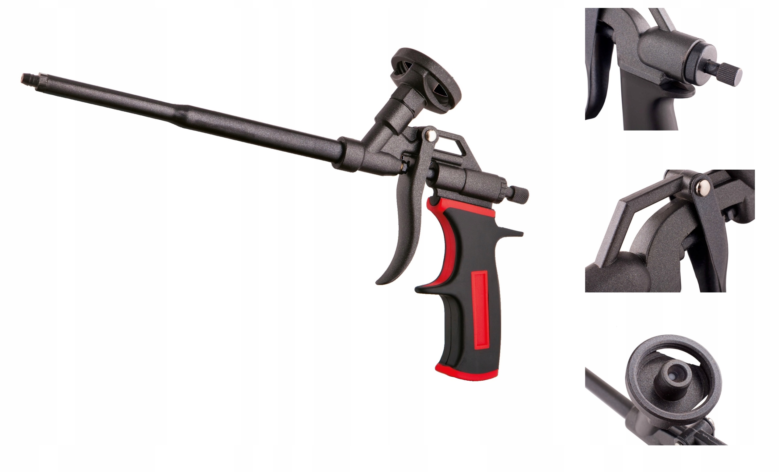 - Пистолет имеет ручку, позволяющую регулировать подачу подаваемой пены.