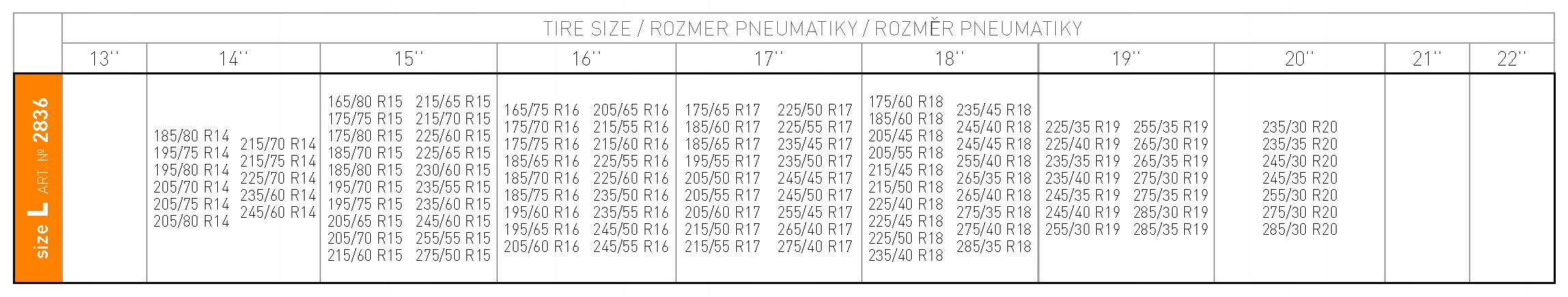 - Совместимость: Размер L подходит для широкого спектра шин, что делает его универсальным решением для многих моделей автомобилей.