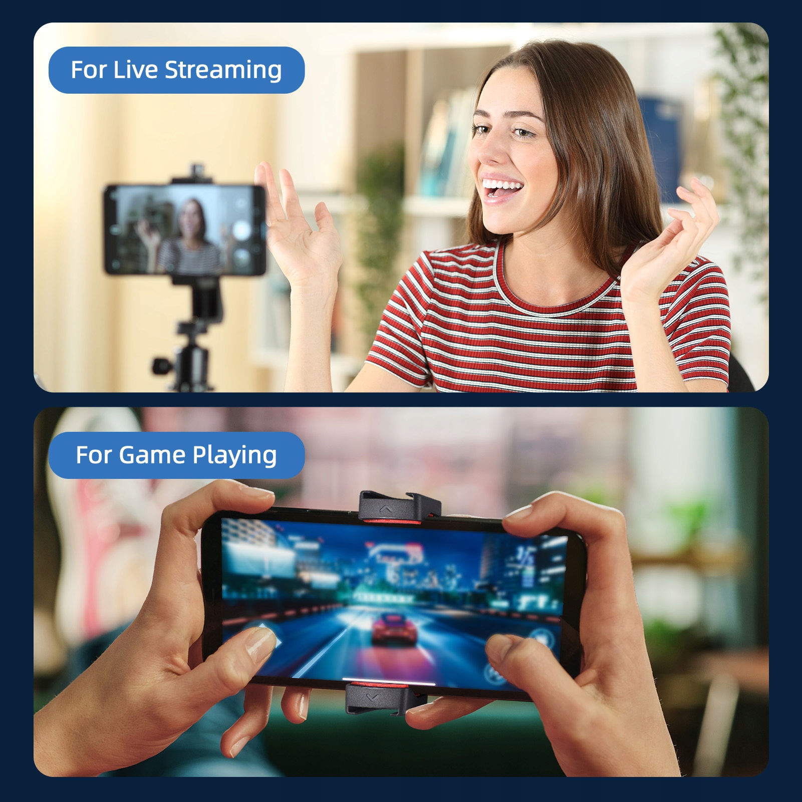 5. Расширенные возможности потоковой передачи в реальном времени. Этот кулер, являющийся вершиной двойных холодных башмаков, позволяет подключать светодиодные лампы и микрофоны, что поднимает настройку потоковой передачи в реальном времени на профессиональный уровень. Кроме того, отверстие для винта диаметром 1/4 дюйма позволяет легко установить кулер для телефона на штатив.