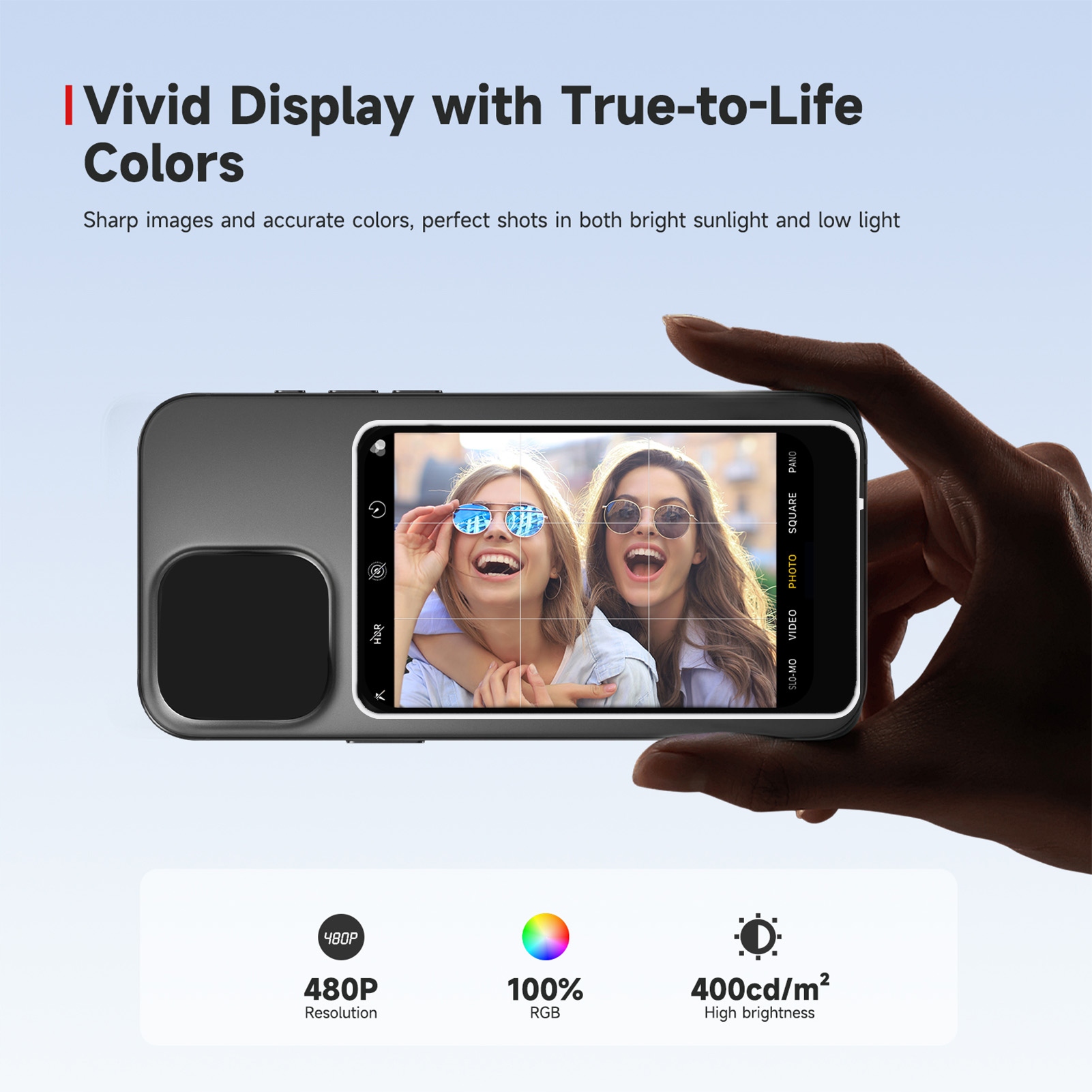 - Экран мониторинга селфи телефона позволяет использовать заднюю камеру телефона для съемки ярких селфи-видео, прямых трансляций, создания контента для Интернета и многого другого. Попрощайтесь с неуклюжими ракурсами и размытыми кадрами. Аккумулятор емкостью 1300 мАч обеспечивает около 3 часов непрерывного использования, а интеллектуальное управление питанием обеспечивает беспроблемное творчество. Он имеет надежное магнитное крепление, которое легко прикрепляется к телефону.