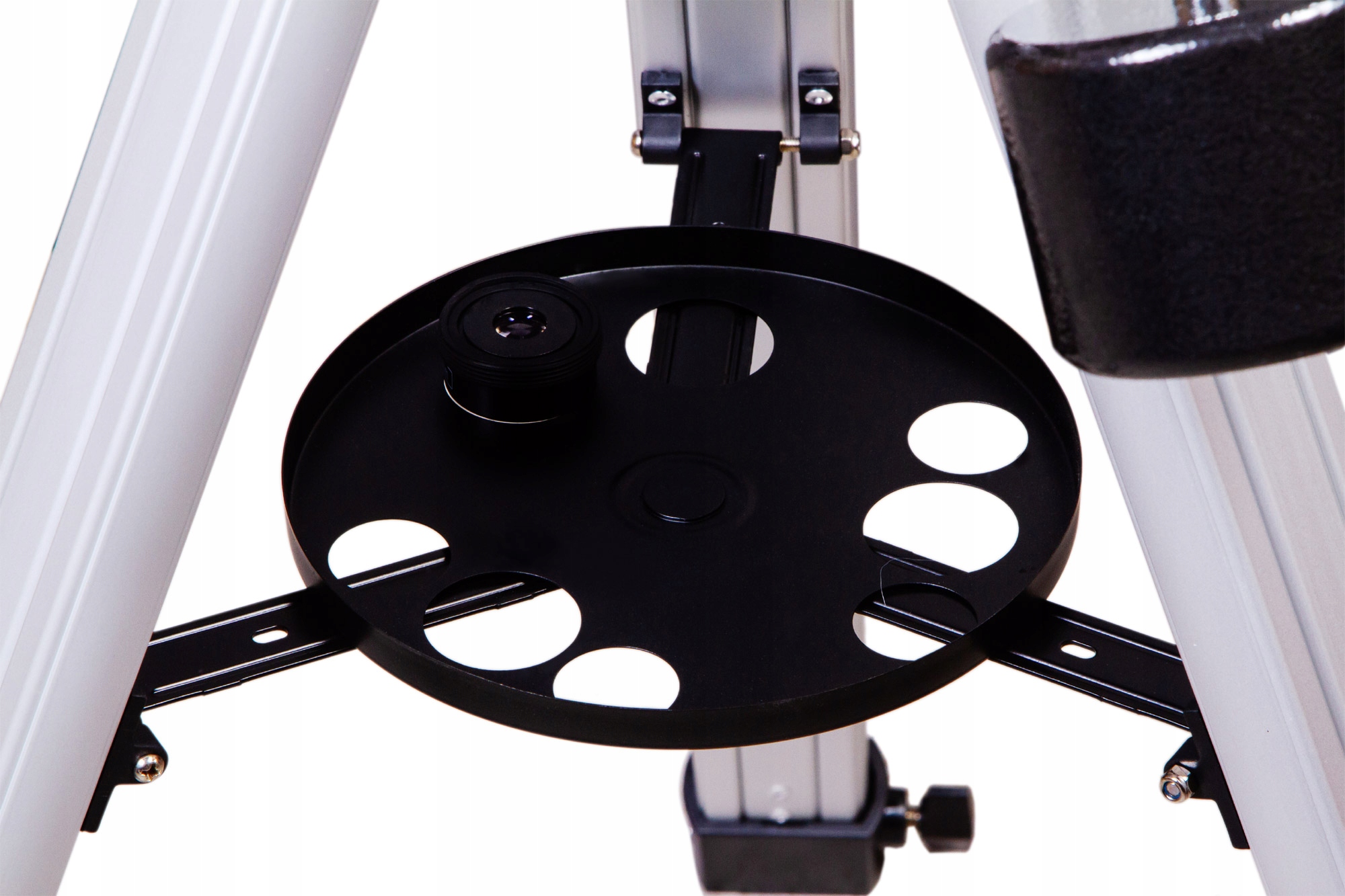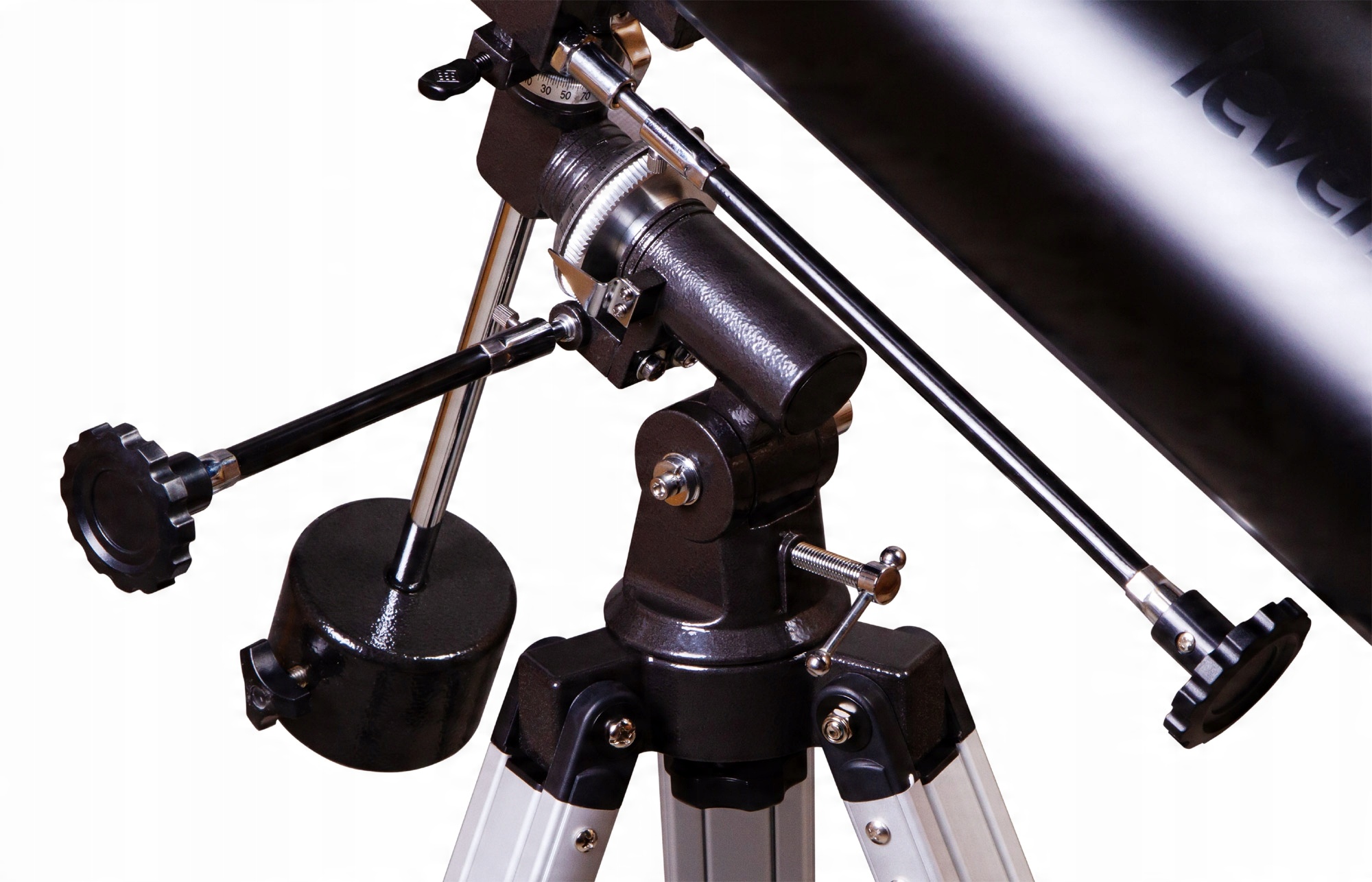 Этот телескоп подойдет как новичкам, так и опытным любителям астрономии. Телескоп установлен на экваториальной монтировке, что позволяет быстро позиционировать трубу на объектах и отслеживать их при длительных наблюдениях. Обучение использованию телескопа требует некоторого времени, но для целеустремленных начинающих наблюдателей это не станет препятствием. Сборка крепится на алюминиевый штатив с регулируемыми по высоте ножками. В комплект входит полка для инструментов.