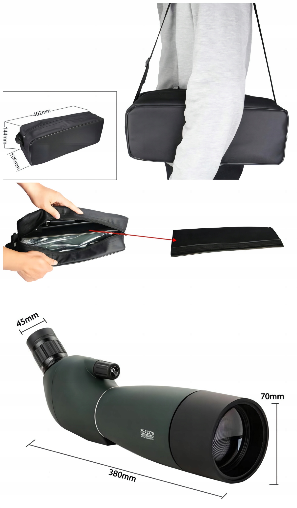 Teleskop Monokular Luneta ZOOM 25-75x 70mm BAK-4 FMC IP65 Stopu Magnezu