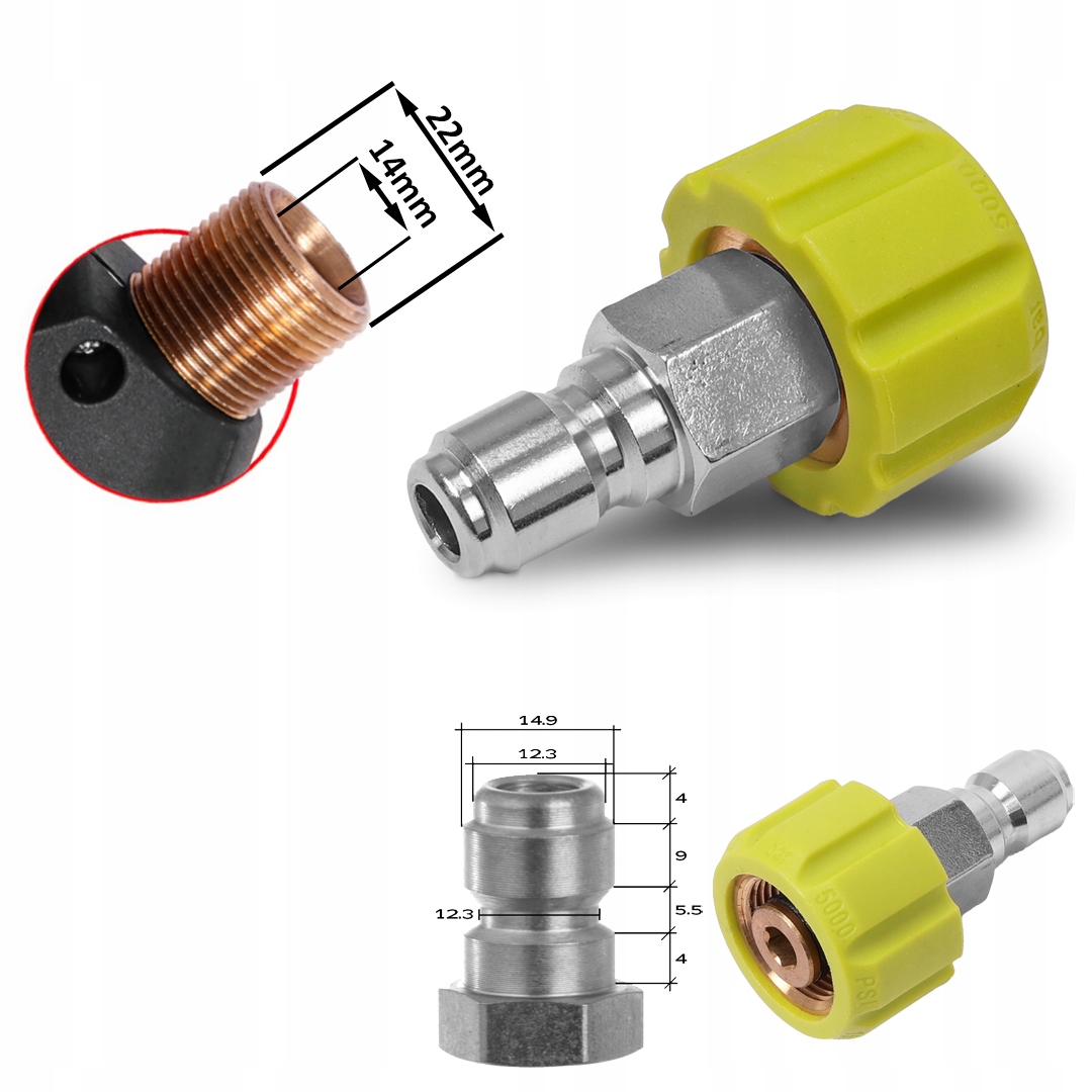 - ✅ Благодаря стандартной резьбе M22x1,5 мм пистолет-копье совместим с большинством представленных на рынке моек высокого давления, например, KARCHER HD/HDS, KRANZLE (в комплект также входит переходник с резьбой М22 для быстроразъемного разъема 3/8 дюйма – размеры в галерее).