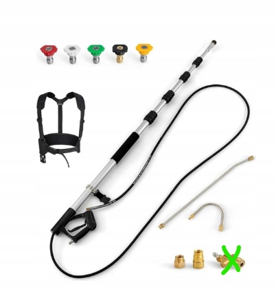 Благодаря насадке для желобов очистка желобов становится детской игрой. Прочный и долговечный материал: алюминиевая телескопическая штанга и удлинительная штанга из нержавеющей стали хорошего качества, прочные и подходят для длительного использования. Кроме того, полностью герметичный водяной пистолет и шланг обеспечивают дополнительную безопасность.