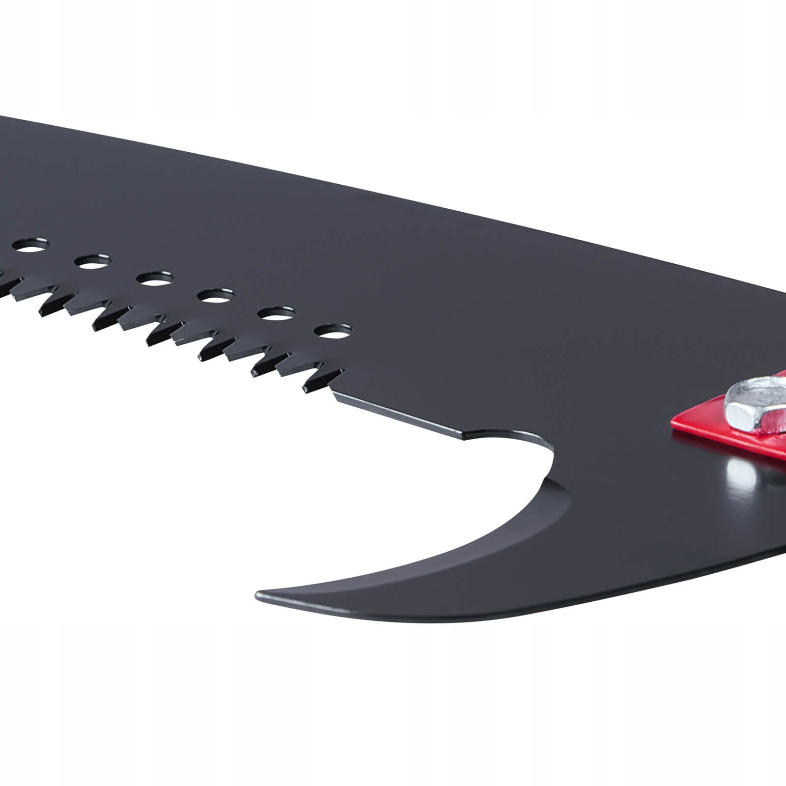 Универсальное пильное полотно: секатор оснащен двойным лезвием с крючком для обрезки различных ветвей. В верхней части лезвия имеется крючок, который оттягивает ветки, а отверстия в лезвии помогают удалять стружку во время резки и обрезки.