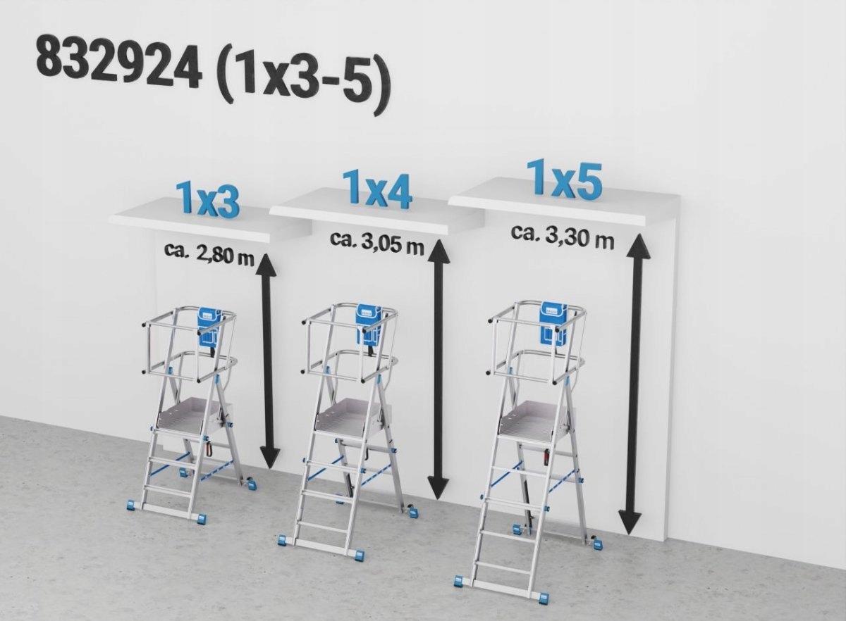 - В версии платформы с 1x3 до 1x5, предлагаемая рабочая высота: от 2,80 м до 3,30 м; In the platform version from 1x5 to 1x9 levels, the working height is: from 3.30 m to 4.35 m