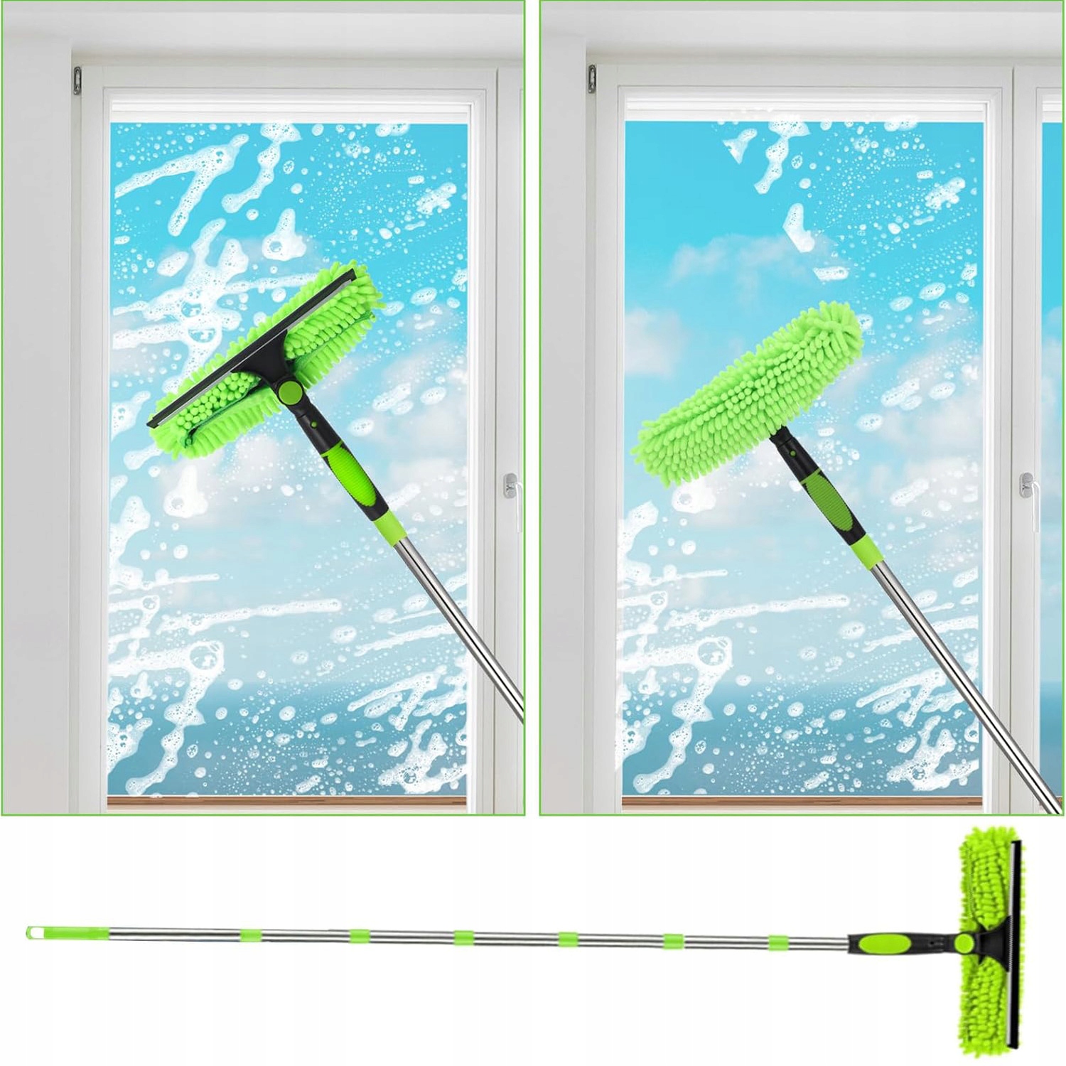⚜️⚜️ТЕЛЕСКОПИЧЕСКАЯ ЩЕТКА И ШВАБРА ДЛЯ МЫТЬЯ ПАНЕЛ ОКОН, АВТОМОБИЛЯ, СЕМЬИ 2 В 1 СЪЕМНАЯ МАШИННАЯ МОЮЩАЯСЯ ВЫСОКОКАЧЕСТВЕННАЯ ЗЕЛЕНАЯ⚜️⚜️