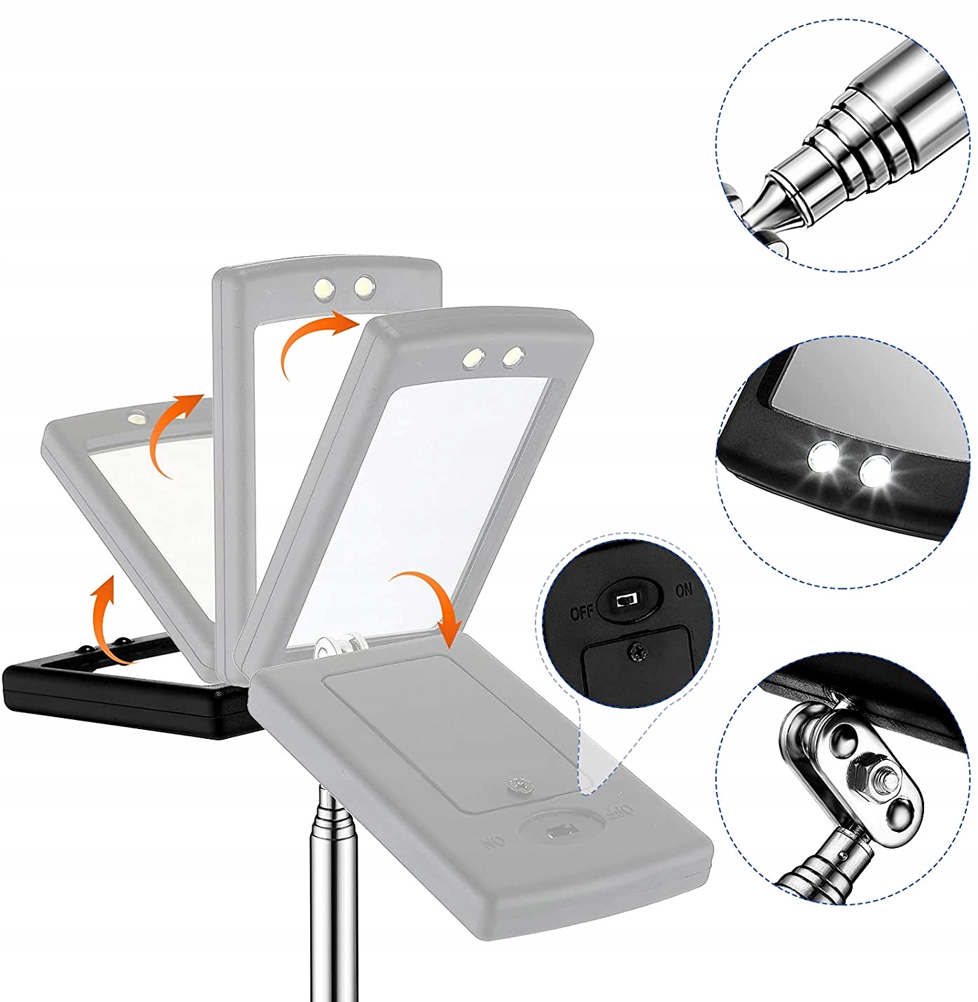 ТЕЛЕСКОПИЧЕСКОЕ СМОТРОВОЕ ЗЕРКАЛО + СВЕТОДИОДНЫЙ ФОНАРИК