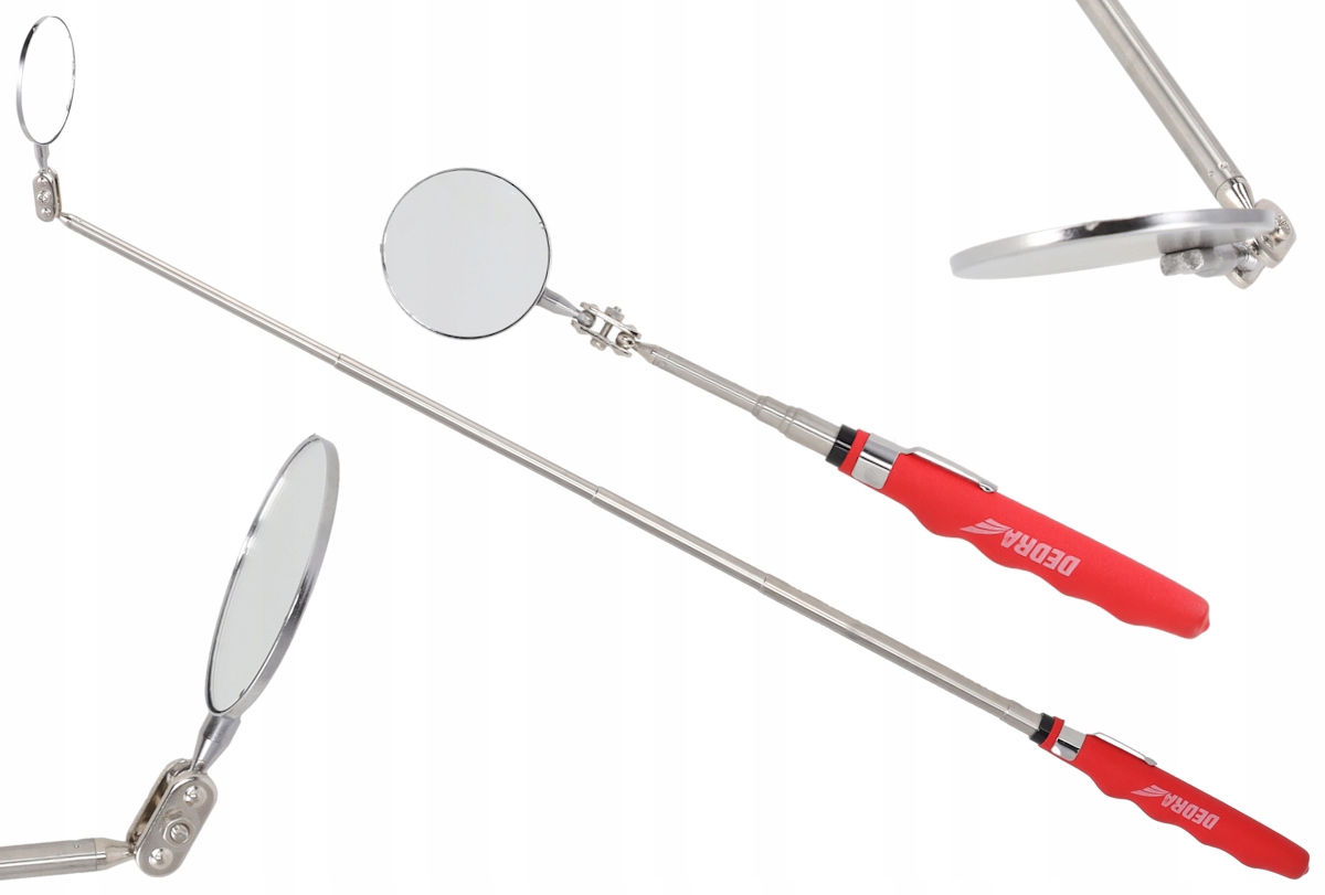 Смотровое зеркало DEDRA 06F800 – инструмент, предназначенный для точного осмотра труднодоступных мест. Он оснащен телескопической ручкой, позволяющей регулировать длину, и подвижным зеркалом, позволяющим устанавливать его под любым углом.