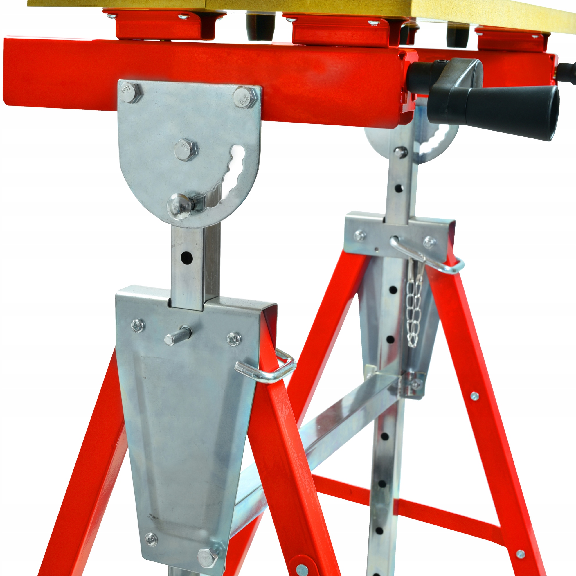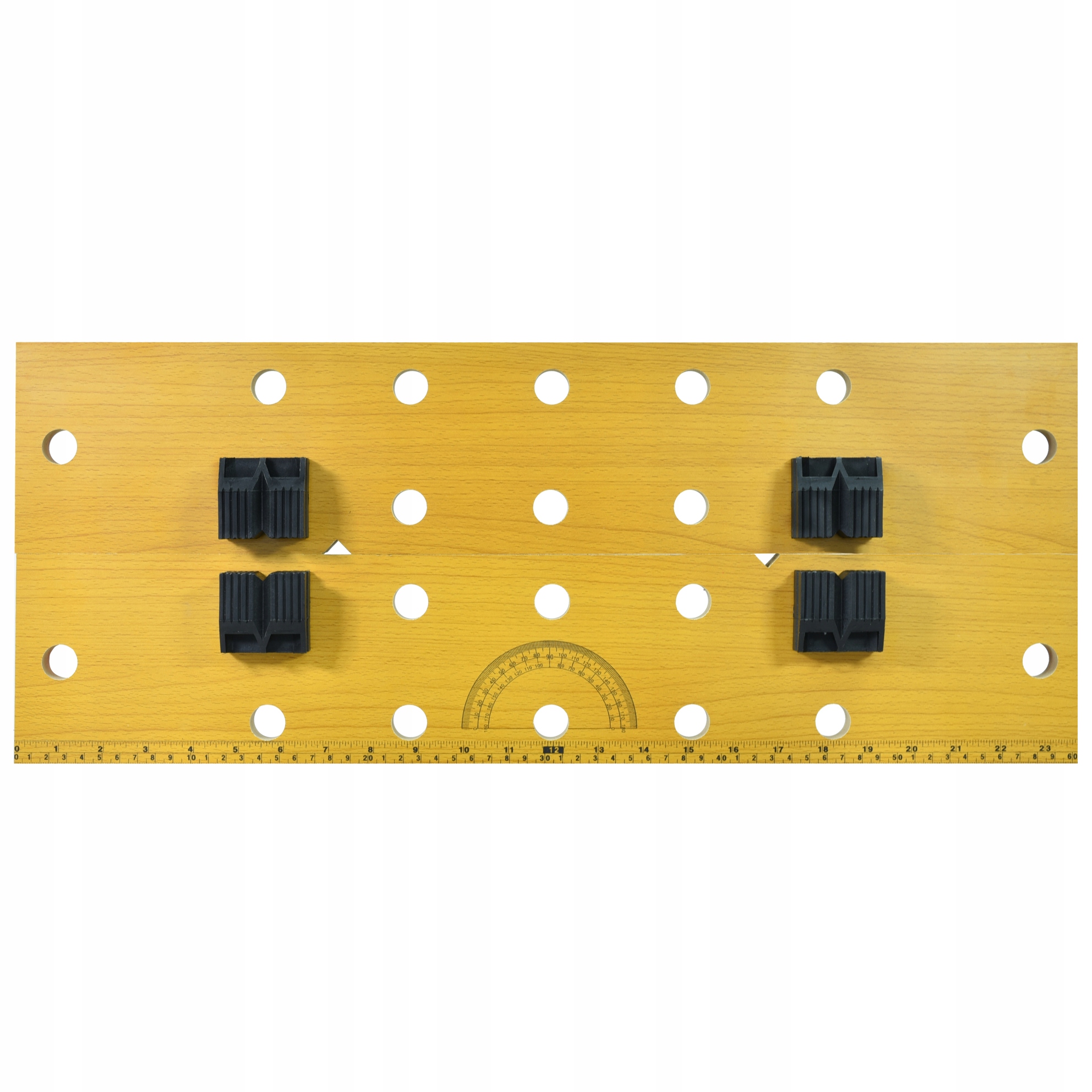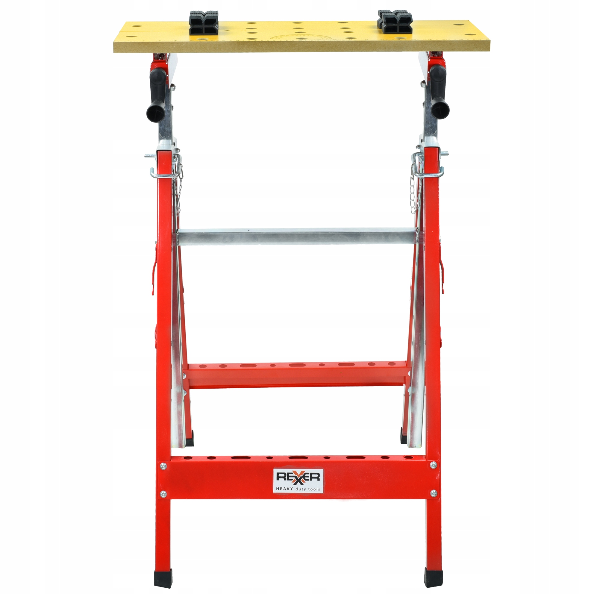 Складной верстак с регулируемой высотой столешницы и грузоподъемностью 100 кг — практичное решение для людей, которым нужна устойчивая рабочая поверхность, но которые имеют ограниченное пространство в мастерской, гараже или студии. Стальная рама обеспечивает прочность и устойчивость. Он сконструирован таким образом, что его можно легко складывать и раскладывать. Стол оснащен телескопической регулировкой высоты (до девяти уровней) и регулировкой наклона столешницы от 0° до 90° в 7 положениях. Столешница изготовлена из прочного материала – МДФ. Он разделен на две секции, которые можно соединять или отделять друг от друга с помощью кривошипно-шатунного механизма. В столешнице просверлены отверстия, в которые можно вставить ручки, облегчающие сжимание и удерживание обрабатываемых материалов или предметов, над которыми производятся работы. Стол спокойно выдерживает нагрузку до 100 кг, чего достаточно для большинства работ в мастерской.