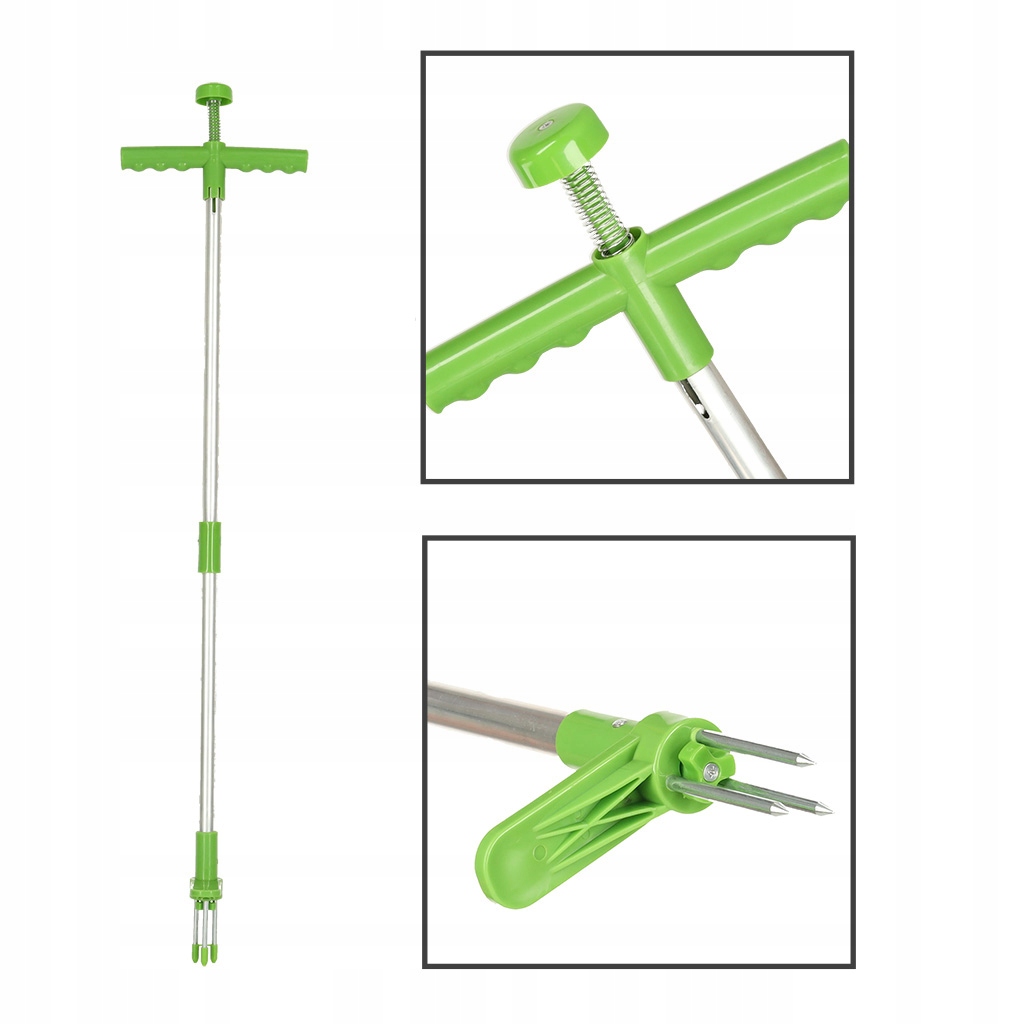 Устройство на конце имеет три лезвия, которые захватывают сорняки с нескольких сторон и позволяют удаление его неинвазивным способом – то есть не повреждая близлежащие растения. И все это не наклоняясь!