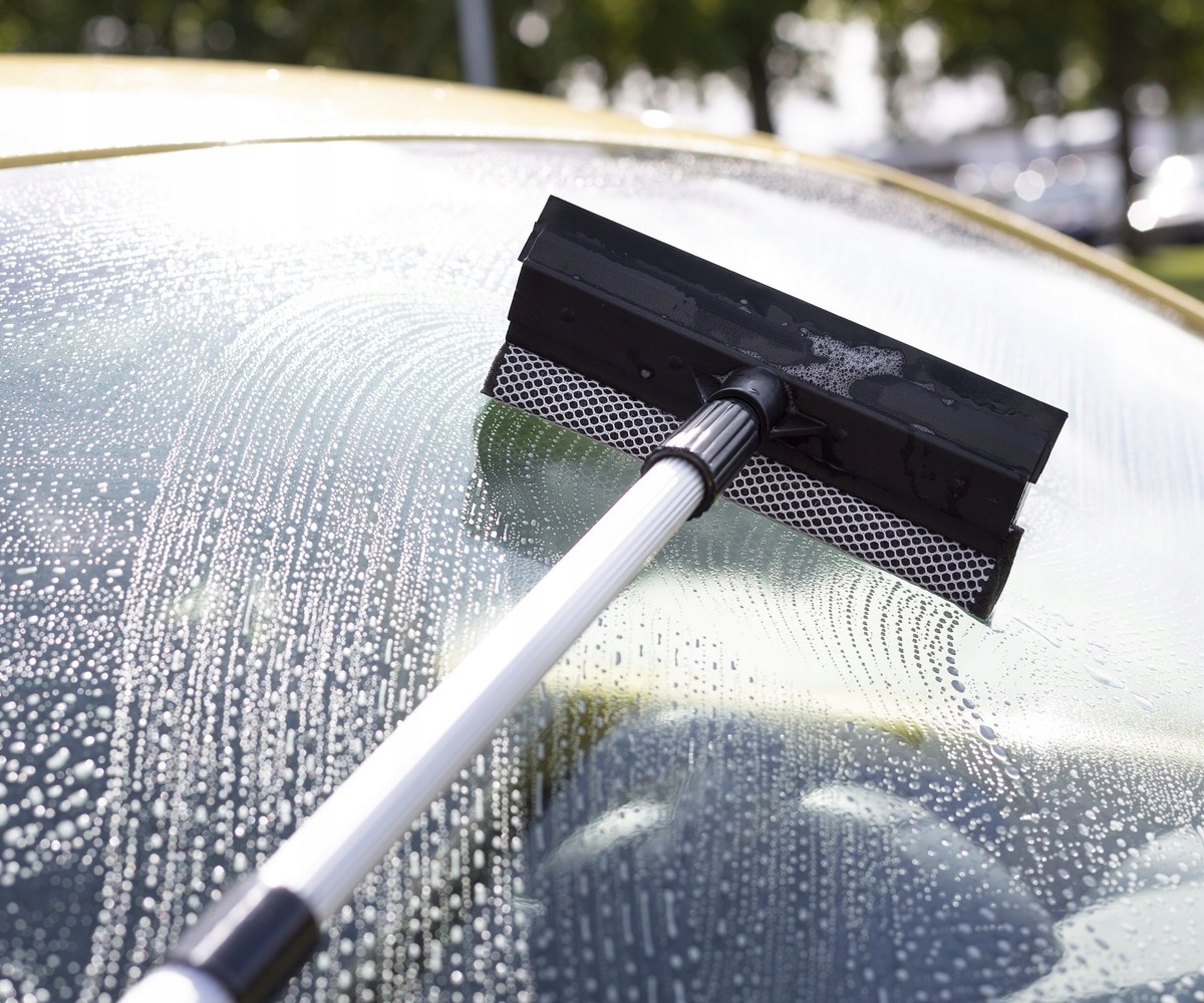 Благодаря выдвижной телескопической ручке рукоятку швабры можно удлинить до 125 см, что значительно облегчает работу как на грузовиках, так и на автобусах.