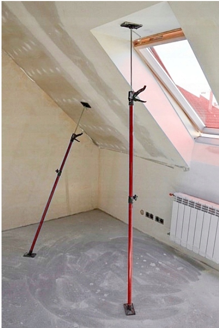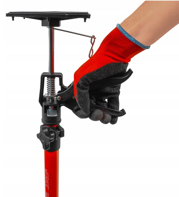 Телескопические опоры предназначены для временного крепления строительных и конструктивных элементов. Чаще всего используется для крепления гипсокартона или других плит во время монтажа и постоянного привинчивания, например, на потолках. Регулировка длины осуществляется в два этапа путем первоначального снятия с корпуса и фиксации пружинными штифтами, а также точного выдвижения и регулировки опоры с помощью кнопки рычага. Максимальная безопасная нагрузка – 30 кг. Рабочий диапазон 115-290см.