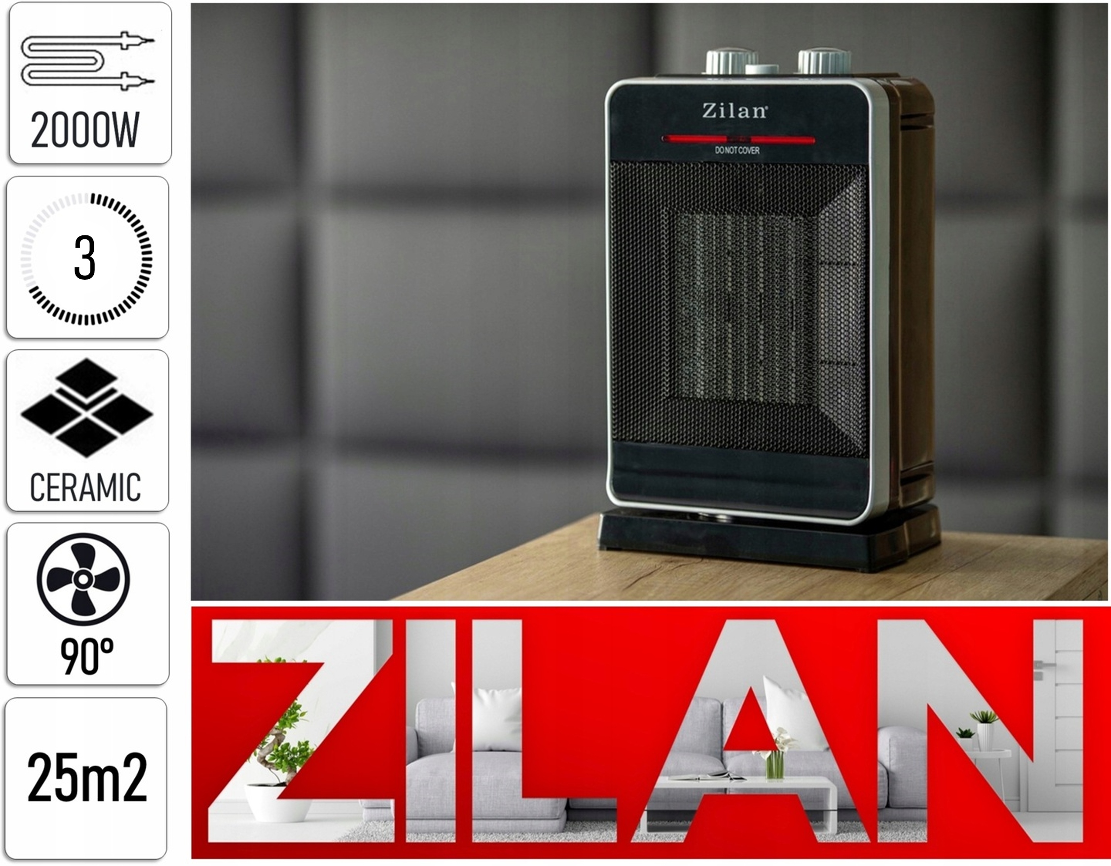 ТЕЛЕВЕНТИЛЯТОР ЗІЛАН 2000Вт КЕРАМІЧНИЙ ОБІГРІВАЛЬНИК