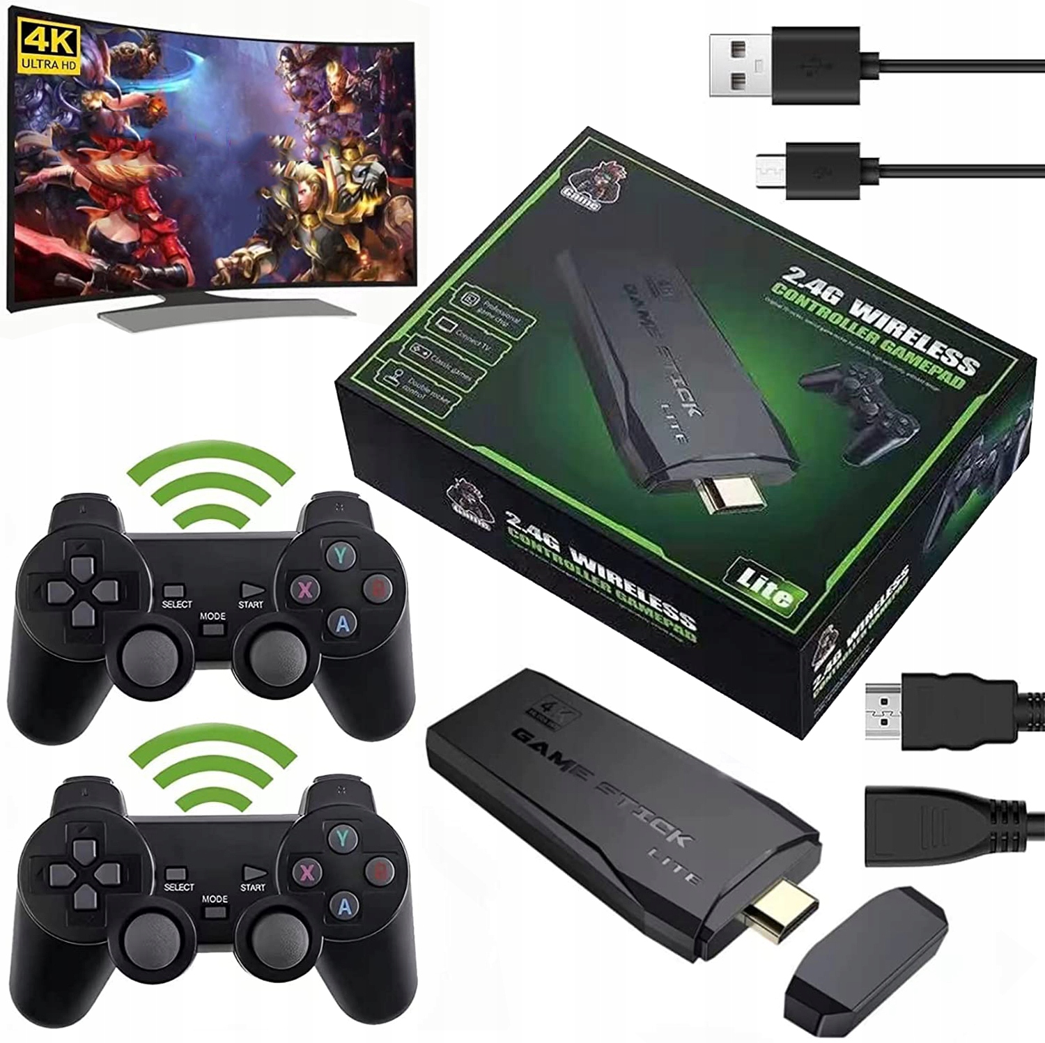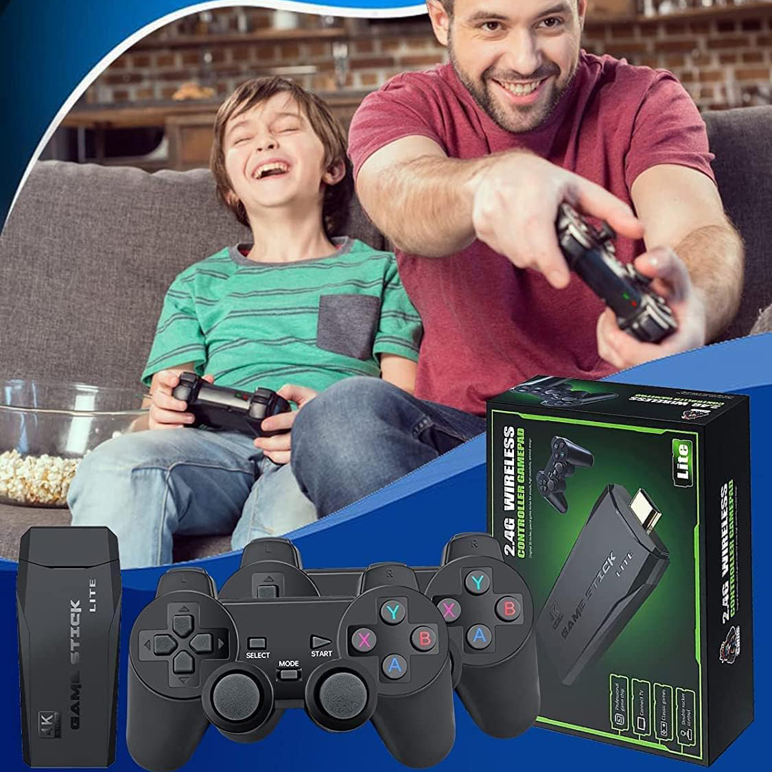 - ✔️Оснащен двумя беспроводными геймпадами 2,4G.