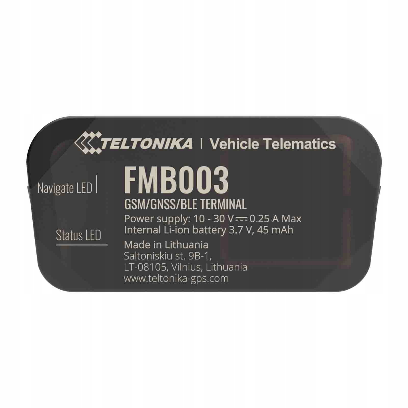 Teltonika FMB003 — это усовершенствованный терминал слежения в реальном времени типа Plug and Track с GNSS, GSM > и Bluetooth.
