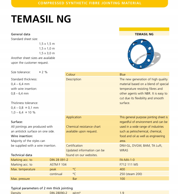 Прокладочный лист Temasil NG 500x300x0,5 мм