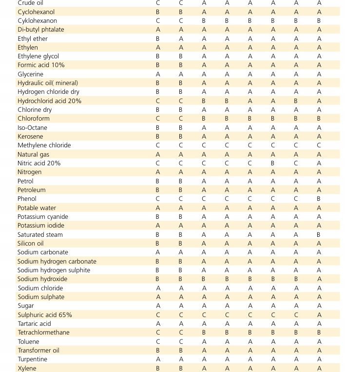 Благодаря составу высококачественных материалов прокладка может применяться в широко понимаемой автомобильной, нефтехимической, нефтяной, химической, пищевой и машиностроительной промышленности в следующем диапазоне параметров: