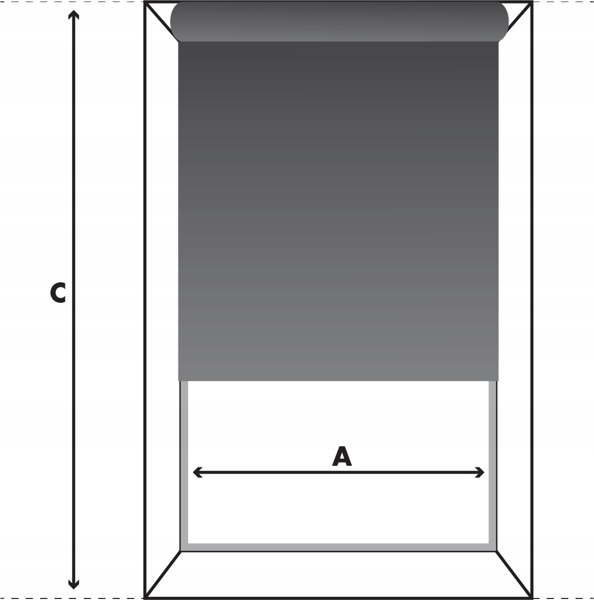 Если высота створки (C) 150 см или менее, следует закажите рулонную штору длиной 150см (рулонную штору такой длины есть на других наших аукционах), когда высота створки превышает 150см, рекомендуем приобрести рулонную штору длиной 220см (та, что с аукциона) обычно такая длина нужна для балконных окон.